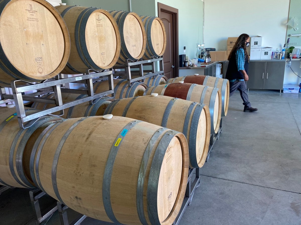 Tara Gomez in the barrel room at Camins 2 Dreams