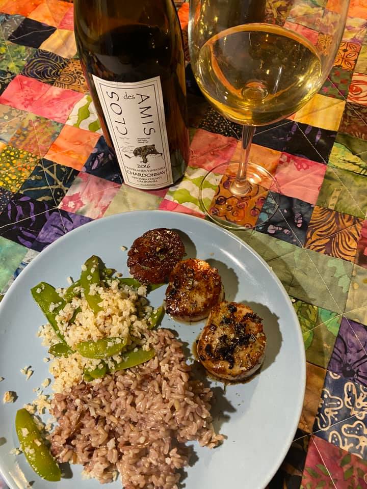 This year, we had fresh scallops. And the one wine I wanted to open was the 2016 Olivelands Chardonnay from Clos des Amis (SRP $18). I wanted the fresh Meyer lemon notes and crisp minerality. I have some amazing bottles in my cellar that would go well with scallops– Champagne, Condrieu, Burgundy, a 2011 Kistler Napa Chardonnay, other California Chardonnay, even an Oregon Chardonnay (which I LOVE).
