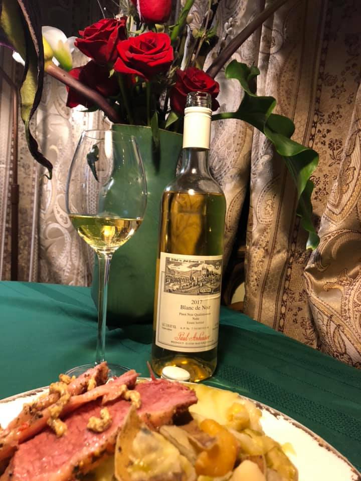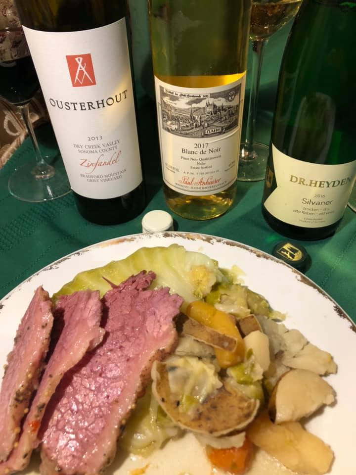 This Silvaner really paired well with the sharp Irish cheddar, It liked the salinity, the creaminess of the cheese cut through the bright acidity. The wine likes the earthy qualities of the potatoes and the cabbage. They bring out the fruit in the wine. The spices in the corned beef also play really nicely with the wine. This wine offers herbal notes which compliment those of the meal.