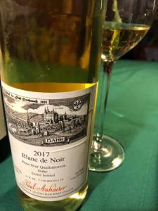 On the label there is an image of Nahe and the castle from 1631. Most people know of Mosel, but this estate is located in Nahe, a small region with a wide range of soil types that is named after the river that crosses the valley toward the Rhine. Soils include volcanic, slate, loess, loam, and sandy soils. I found this wine to have fruit and floral, while Sue thought it smelled of grass and lemon. Sweet watermelon, almost like a jolly rancher watermelon, white flowers. Sweet tart, cherry strawberry lemonade, pink lemonade, light in body, sweetness on the palate, but not sweet at all. Crisp, clean, lingering finish, possibly some clay, some minerality.