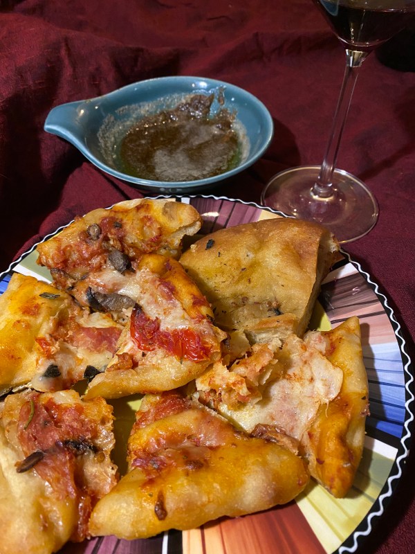 Bagna Cauda is not that photogenic… and the leftover cut up bites of pizza not so pretty either! Because of COVID, we each had small serving bowls for dipping instead of a communal bowl.