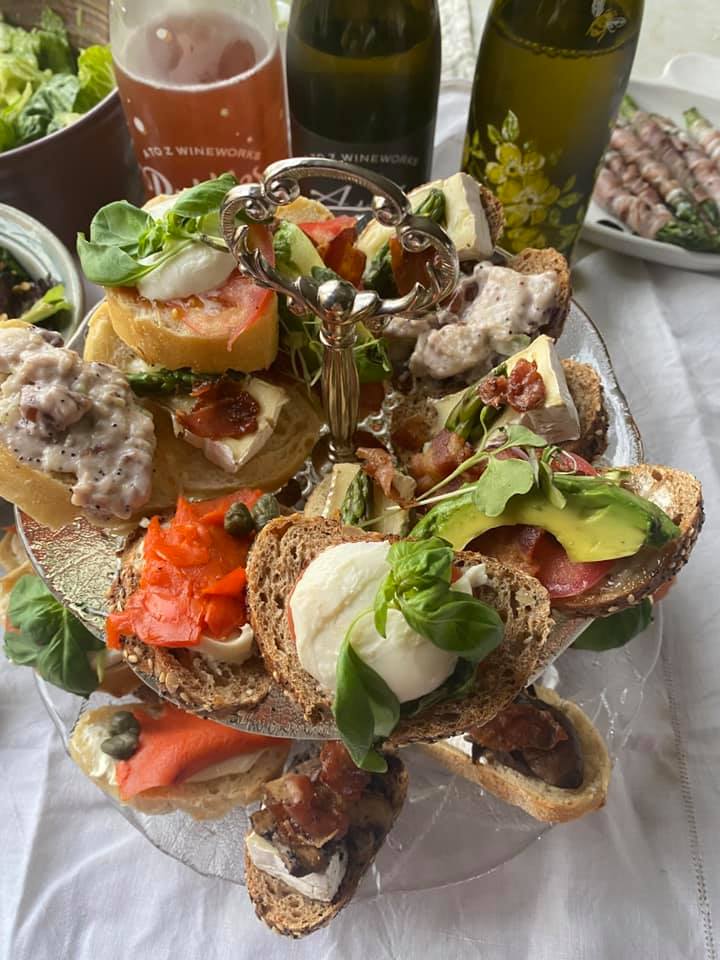 In addition I learned from Deb: “Biodynamic farming is more rigorous than organic farming and all Biodynamically grown grapes would qualify for organic (simply no chemicals) but not vice versa. Some of our grower partners are not certified in any sustainable certification. This year we are working on clarifying our expectations.”And at this price? $16? With wines this good? Now that’s remarkable– as you’ll see from our tasting and pairing notes that follow.First a little HISTORY: In 2002, Oregon wine industry veterans Deb Hatcher of Eyrie, Bill Hatcher of Domaine Drouhin Oregon, Sam Tannahill of Archery Summit, and Cheryl Francis of Chehalem founded A to Z Wineworks. Today A to Z is one of the top-selling under $20 Oregon wine brand with Michael Davies as winemaker since 2006. Twice named to Wine Spectator’s Top 100, A to Z Oregon Chardonnay is America’s best-selling Oregon Chardonnay. In May 2014, A to Z Wineworks certified as a B Corp subsequently being named as a Best for the World B Corp five years in a row. Brainstorming with Sue about what to pair with these three white wines, we were thinking about summer and how we will be able to once again gather with friends. With their screw caps and crown cap, we thought how fun they’d be to share with friends with a selection of simple sandwiches and salads for an American “Tea” or Garden Party in the backyard. Wines from Oregon’s A to Z Wineworks samples provided for my review consideration