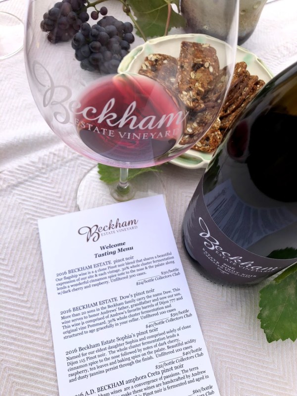In September 2018, on a press trip sponsored by Willamette Valley Wine, I also visited Beckham Estate Vineyard where I met Andrew Beckham and we tasted and chatted; I purchased several wines including the two discussed below fermented in the ceramic vessels he made.