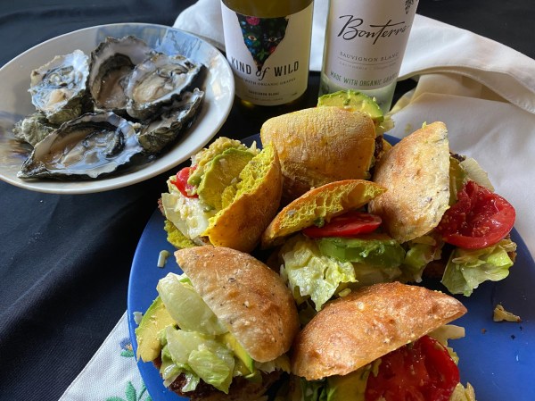Organic Sauvignon Blanc from Bonterra and Kind of Wild Paired with La Brea Bread Calamari Ceasar Salad Sandwiches