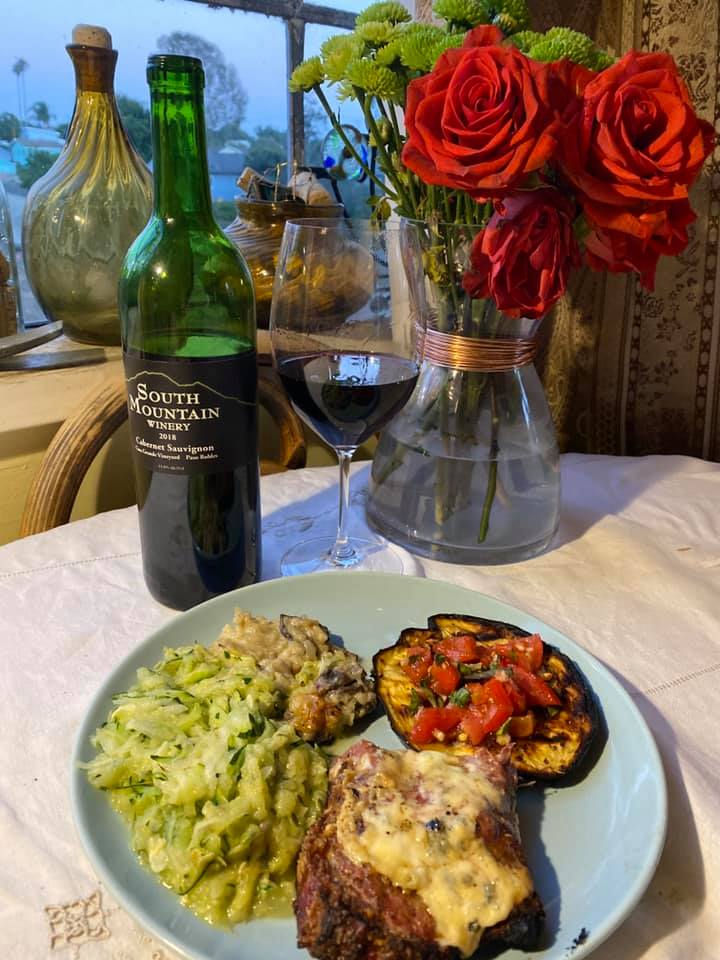 Pairing: Spectacular with a ribeye steak topped with blue cheese. Worked really well with the umami of the grilled eggplant as well as the bruschetta. That little bit of leftover cheesy mushroom risotto was another winner.