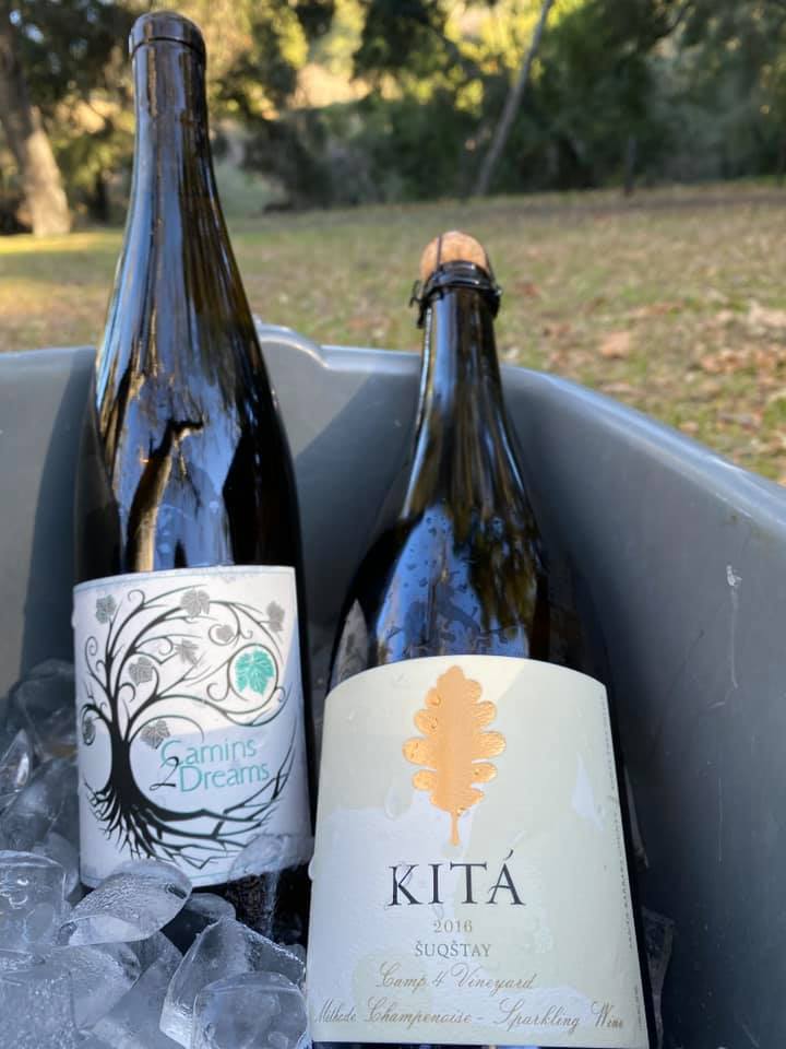 Clos des Amis makes their sparkling “Chambang” from grapes grown about ten miles from the sea, in Saticoy, which means sheltered from the wind. Many parts of Ventura County can get very windy, and having a sheltered place is important. Pismo is the word for tar which sealed tomols –and it’s also the name of a beach located in San Luis County.