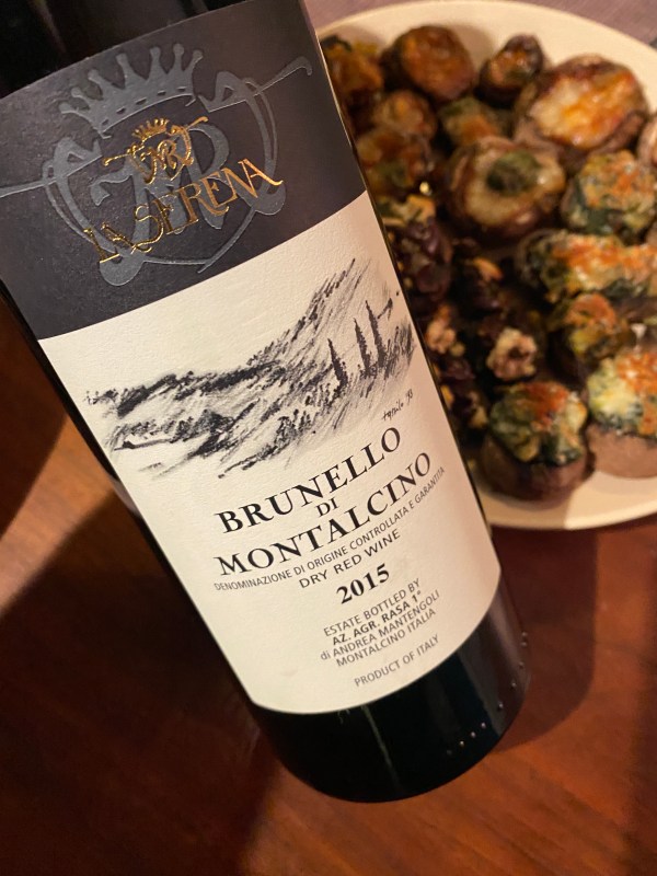 We’ve all been hearing about challenges due to COVID in shipping. On the news they’re telling us to do our Christmas shopping now! So that’s what happened to our sample of this wine: it’s still out there on the Pacific Ocean, hanging around in its container, waiting for a spot at the harbor to get unloaded and then hauled to Ventura. Another day we’ll sample and pair this wine, along with its brethren, the less expensive but still delicious and still sangiovese Rosso di Montalcino.