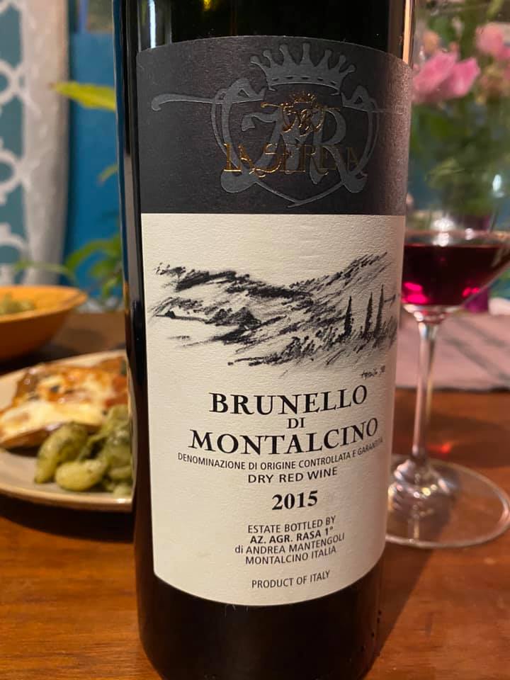 Pairing: Food melts this dry bold Brunello. Loves the rosemary in the foccia. Great with the mushroom bites loving the earthiness and spice. It is also great with the richness of the delicious bite. The herbs and and rich flavors of the pine nuts were a perfect match with the fresh pasta and pesto. The eggplant Parmesan was also a great pairing. This wine is terrific with your favorite Italian meal — vegetarian or with meat!