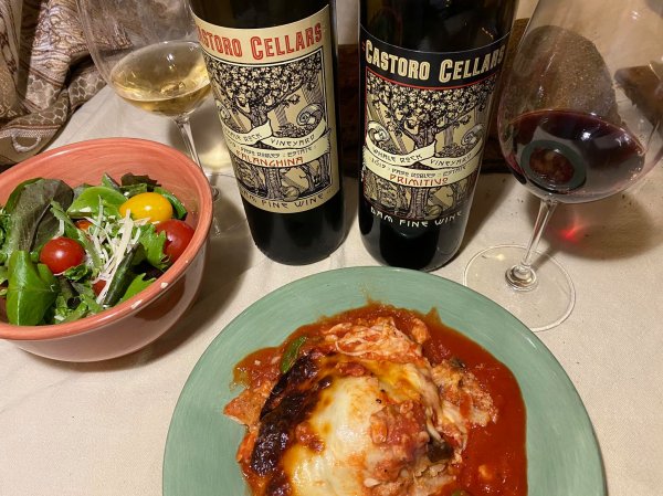 Pairing: While the Falanghina was a perfect mate for the eggplant Parmesan, in comparison it is not the perfect pairing for this Primitivo. The dish made the wine too sweet and flabby, and the meal too sweet and gummy. Fortunately, we also had a bolognese sauce over pasta this evening that went so much better with this wine. it needed the rich meaty red sauce to make it shine. The fatty richness of the pancetta with the sautéed meat over the pasta is superb with this wine.