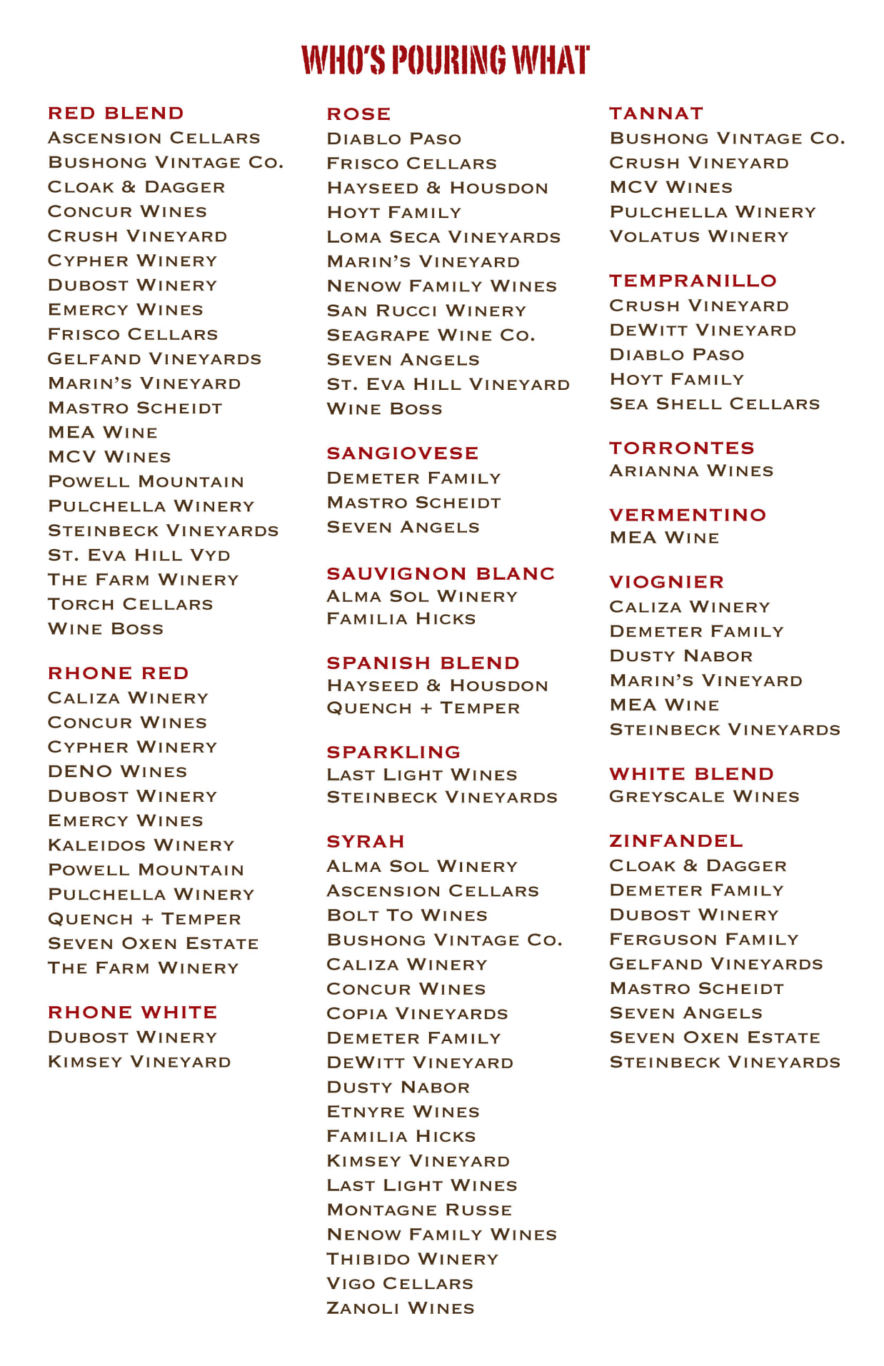 Most other wine events focus on a single region or certain varietal (Pinot Noir, Cabernet, Rhones, etc.), but not The Garagiste Festival which features wines from all over California: Paso Robles, Napa, Sonoma, Santa Barbara, Sierra Foothills, and more. Our case limit is around 1500 per vintage so this is hands-on, high-quality winemaking. This year’s event features these wines and wineries:.