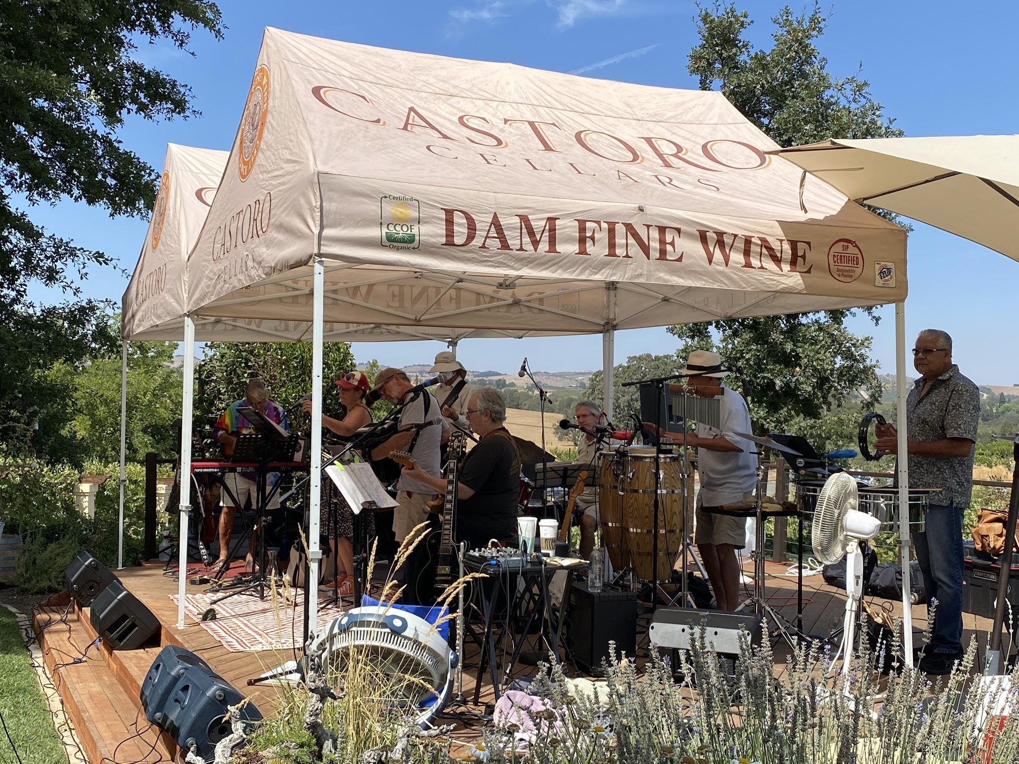 Beaver and Bimmer and big music loveers and supporters; in addiotn to the Whale Rock Festival, they support Live Oak Music Festival and music education in their community. Weekends feature music on a small stage above the vineyards, where people picnic on the grass, bringing their own chairs and blankets to sit on, cooling off under the misters, and taking in the grand view of the vineyards.