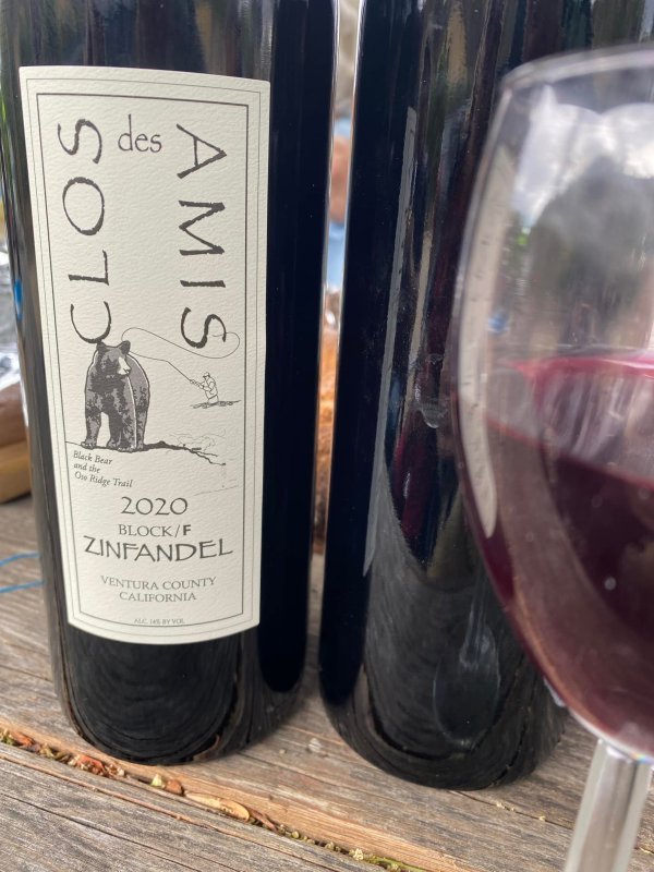 But it wasn’t until recently that I personally experienced picking zinfandel grapes and processing them: summer 2020 found me picking forty year old Zinfandel from a UC Davis experimental plot in upper Ojai, California where the bees and the yellow jackets competed with us for the fruit. The Block F Vineyard came from cuttings from the Hall Vineyard, planted in the 1970s. It was a last minute call, asking if Bruce Freeman of Clos des Amis wanted to pick the fruit and make wine from it.