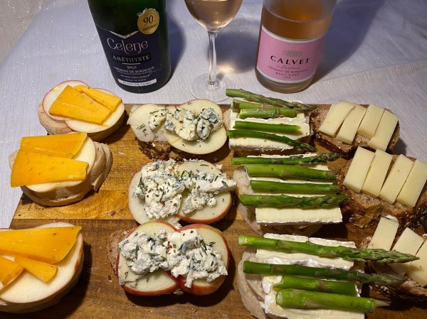 Oh yes, that cheese is fun for a holiday cheese board! And I’m always surprised at how hard it is to find Bordeaux bubbles — but now knowing only 11% is white grapes it makes more sense.