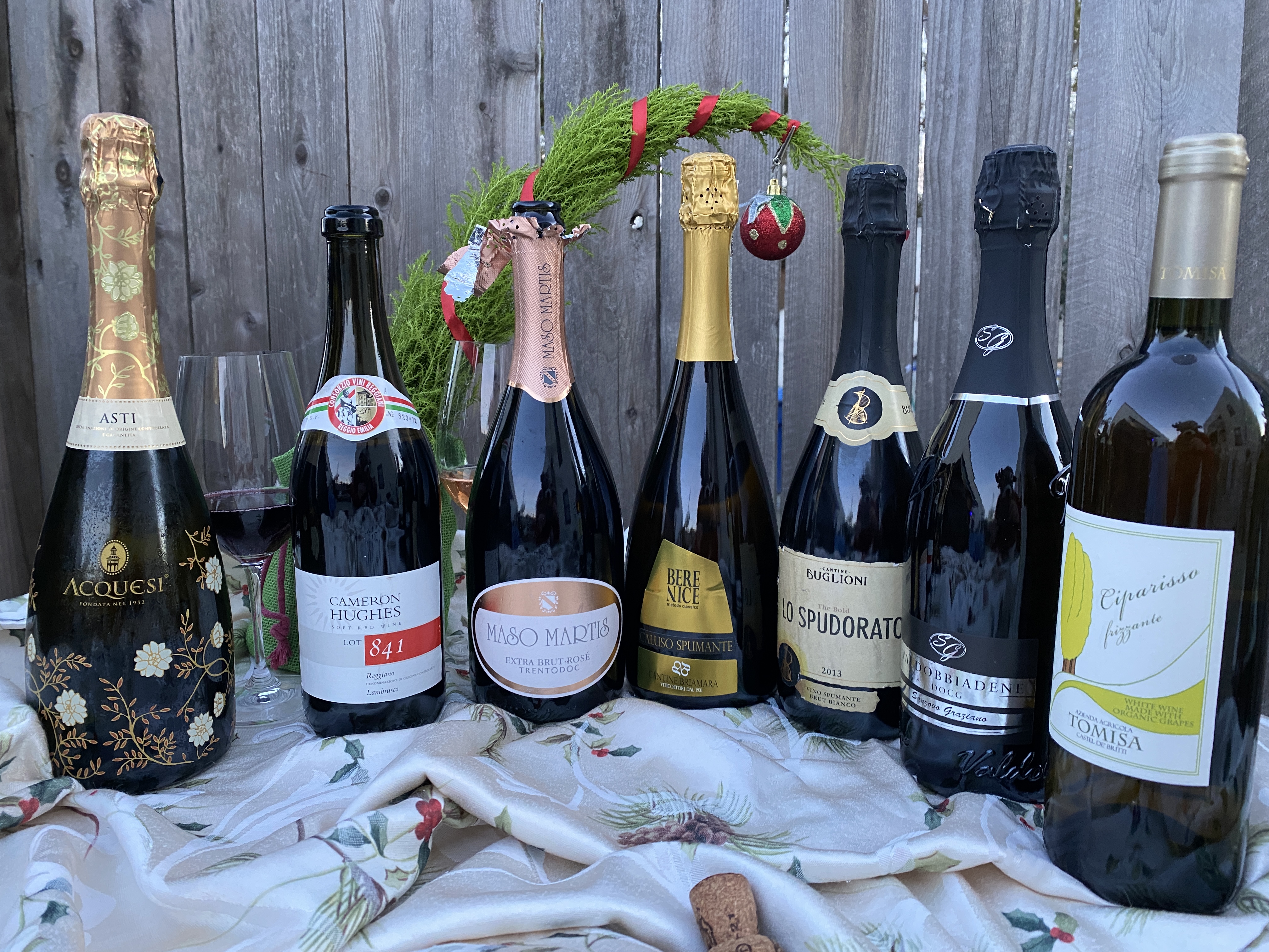 Garganega. Glera. Grechetto. Lambrusco. Moscato. Pinot Nero. These are all grapes made into sparkling wines in Italy, so if you thought Italian sparkling wine came from one place, and in one style, and one grape only –I’m looking at you PROSECCO!– do I have a holiday sparkling wine secret surprise for you! How about seven styles of sparkling wine made from seven different grapes paired with Italian inspired festive finger foods?
