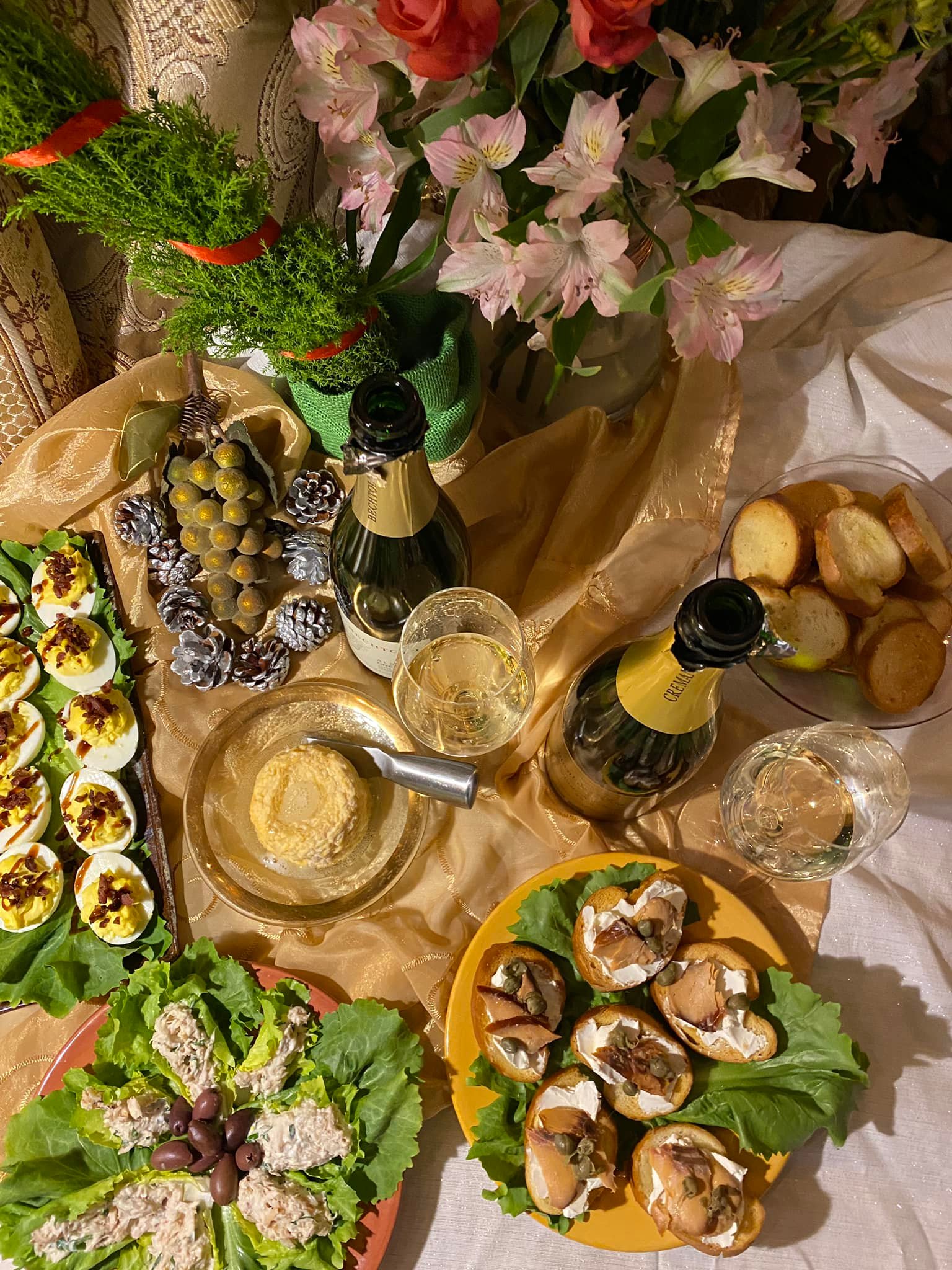 Pairing The salmon is a bit saltier and the wine is a bit sweeter with our smoked salmon crostini. Loved this wine on its own, but even more with food. The crab becomes so sweet with the crab salad lettuce wraps, fried panelle brings out a lemon brightness in the wine. Fantastic with the deviled egg, the bit of dry mustard and drizzle of balsamic glaze are spot on with the wine. The uni with the oyster is so sweet and rich with the wine. Perfect with the langress such a special pairing especially with the cremant poured over the top.