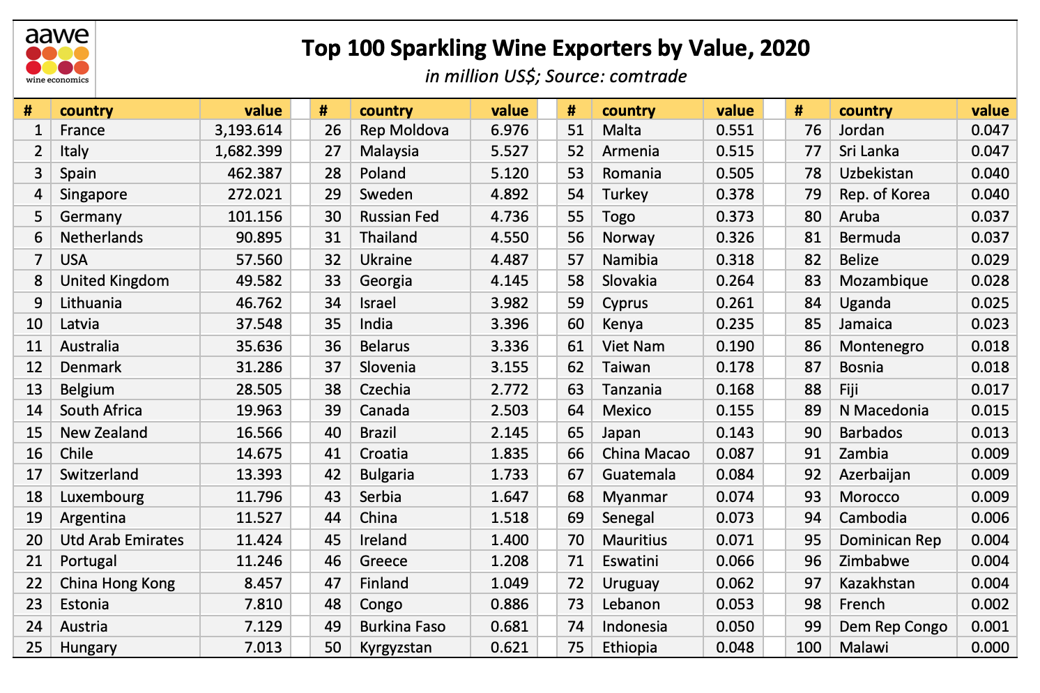While I’d love to try sparkling wine fro Singapore, the surprising number four exporter of sparkling wine in 2020, or the Netherlands at timber seven, in addition to wines from Austria and Germany today, we have #7 USA’s Lodi, #14 South Africa, and #19 Argentina.