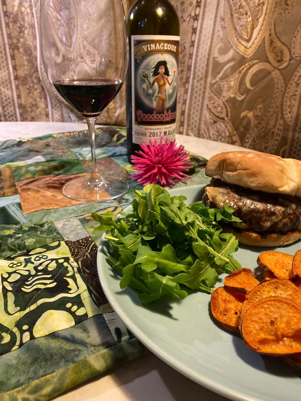 What a fun bottle of wine and a fun post about it. Love me a blue cheese burger.