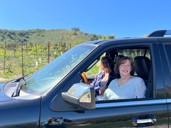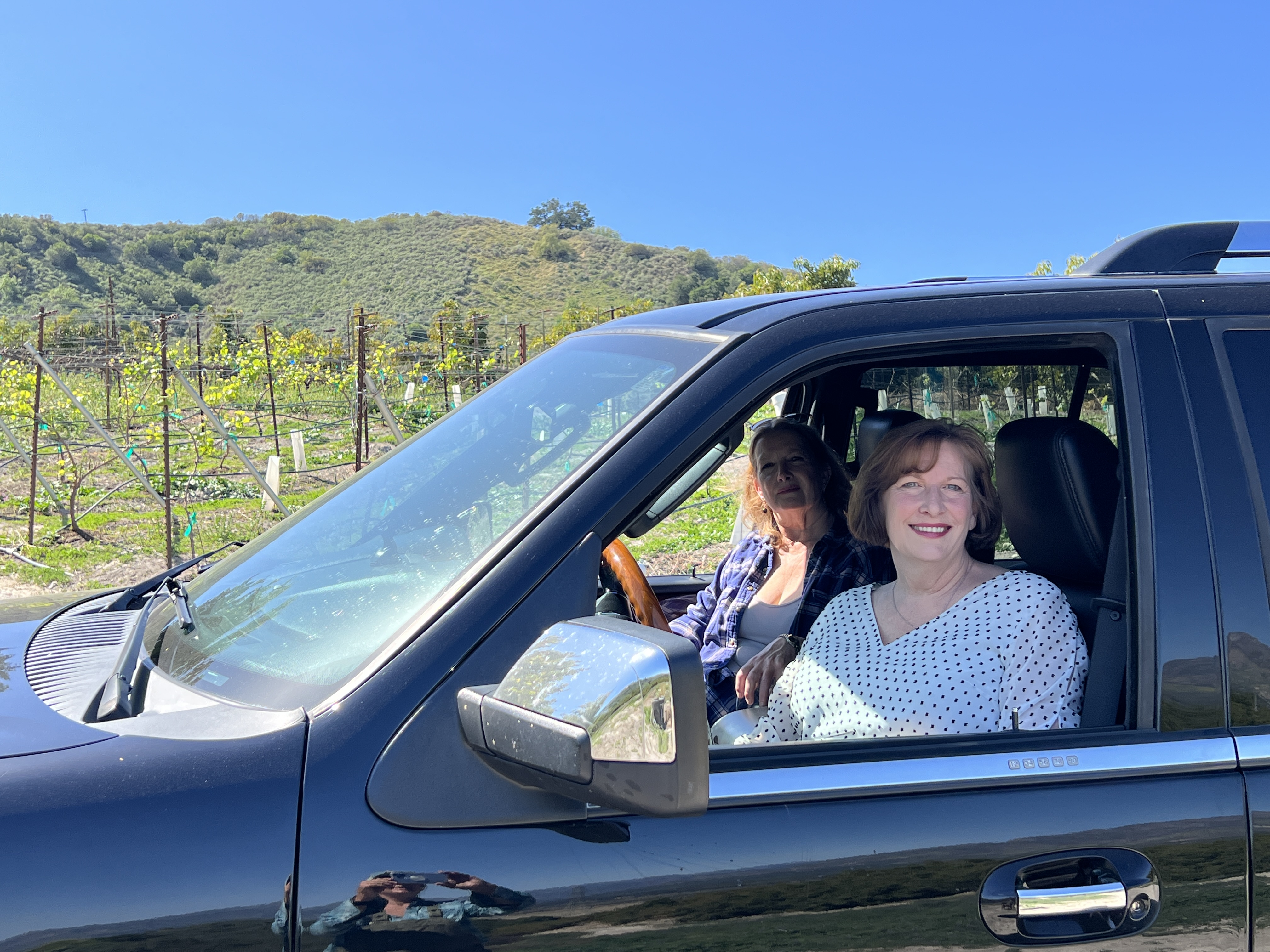 Explore Wine’s Lisa Stoll drives her new Lincoln Navigator to the Clos des Amis vineyards with winemaker Gretel Compton