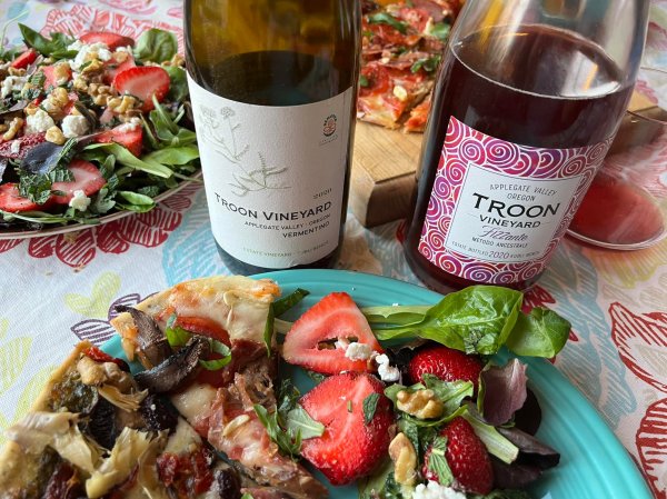So Oregon’s Biodynamic Troon Vineyards FIZZante and Vermentino Pairs with Pizza, Salad #WinePW
