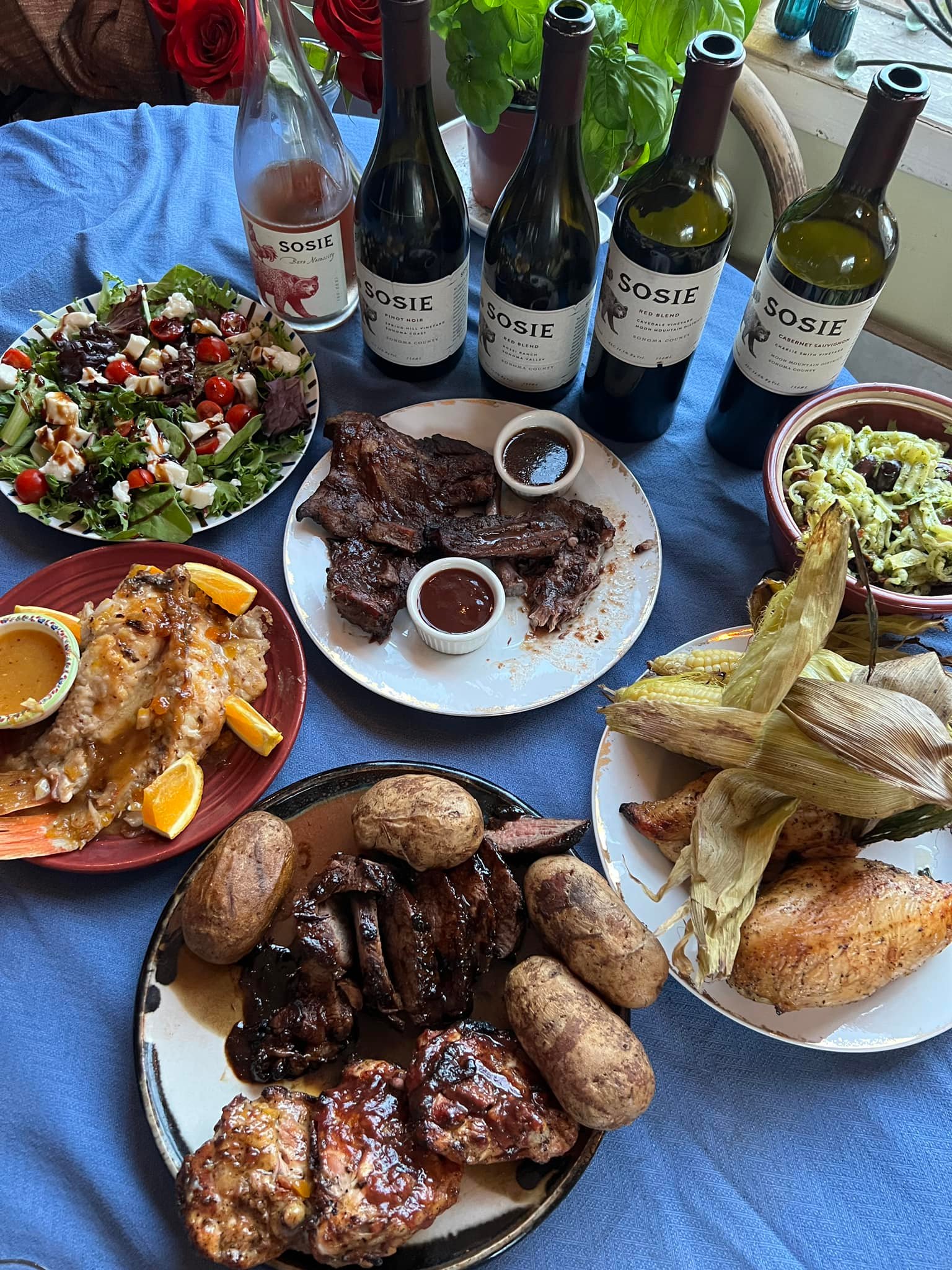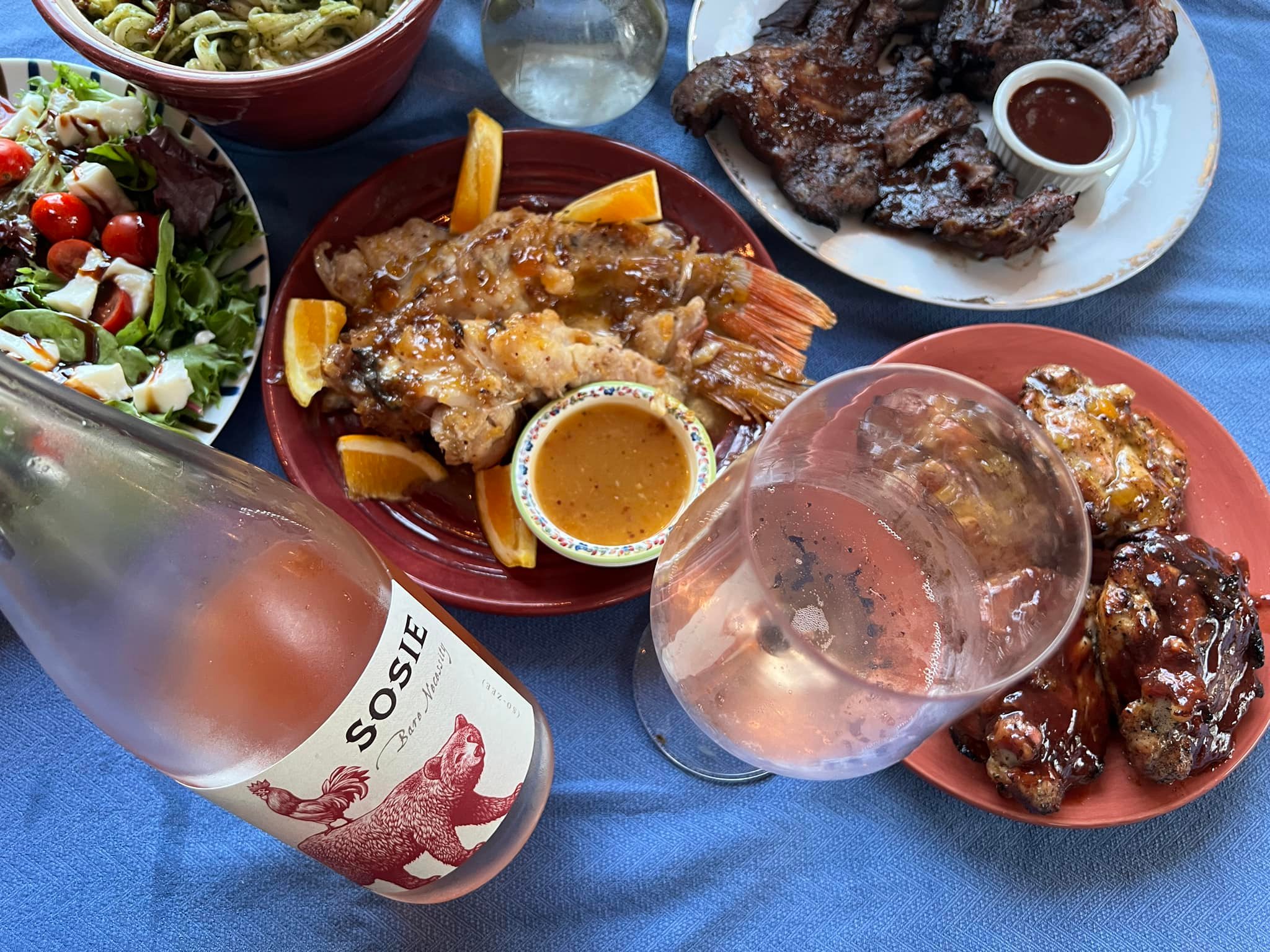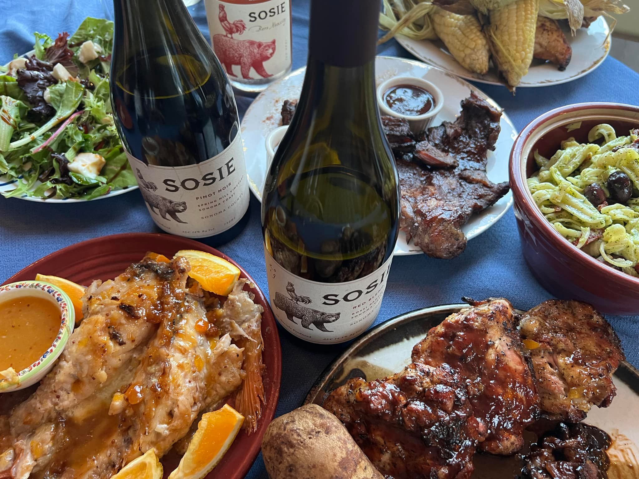 Pairing: This is a fantastic wine that is open to so many foods. It loved the ribs with the plum sauce. The pasta salad also works with the wine. The bold vinegar and pesto flavors are enhanced by the wine. The wine loves the herbs in the pesto and the creaminess of the fresh mozzarella. This wine also loves the hickory smoke that is in the grilled beef. Also a great companion with our pasta salad. It is tames the salty richness of the kalamata olives and the fresh mozzarella cheese.