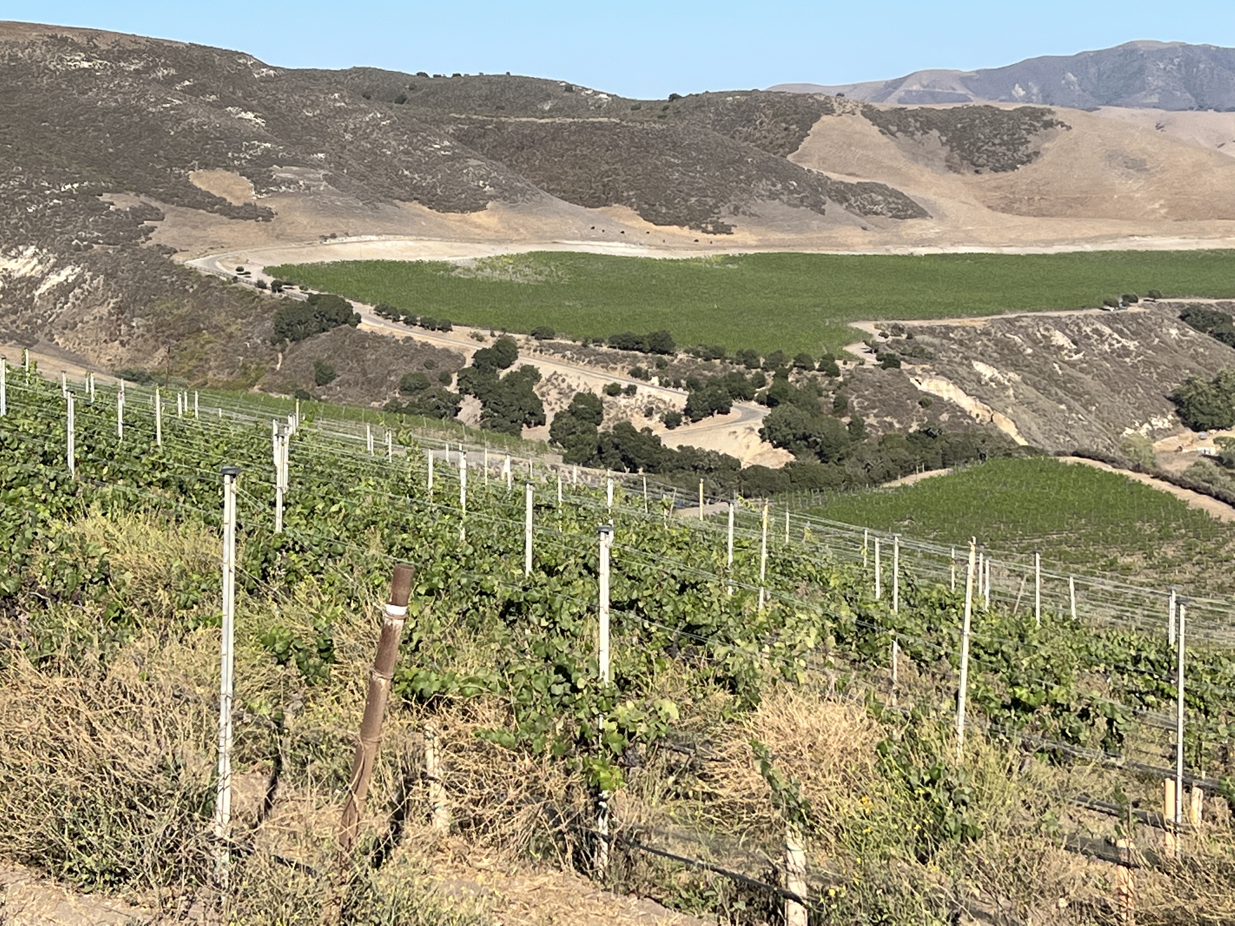 Santa Barbara County wines are special because of an anomaly in geography: while most mountains run north south like caterpillars inching their way to the artic, central California’s Transverse range runs East West which allows the cold Pacific fog and breezes to race in each afternoon and cool off the area starting with the Sta Rita Hills located west of the 101. That actually makes this part of Santa Barbara County a “cool climate” perfect for growing picky Pinot Noir that can become a world class wine.