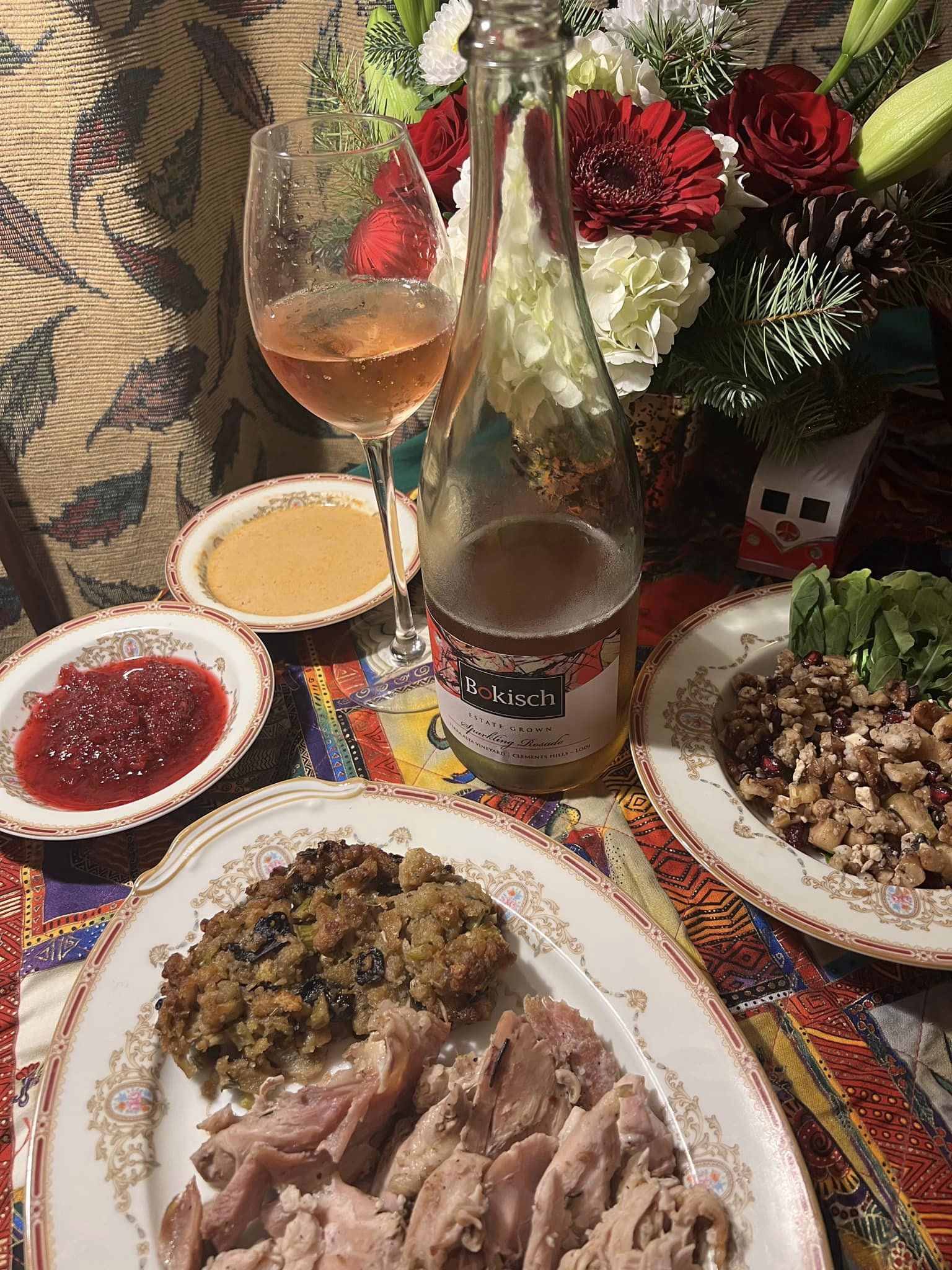 Bokisch Vineyards Sparkling Rosado, Terra Alta Vineyard, Clements Hills, Lodi, CA with smoked turkey