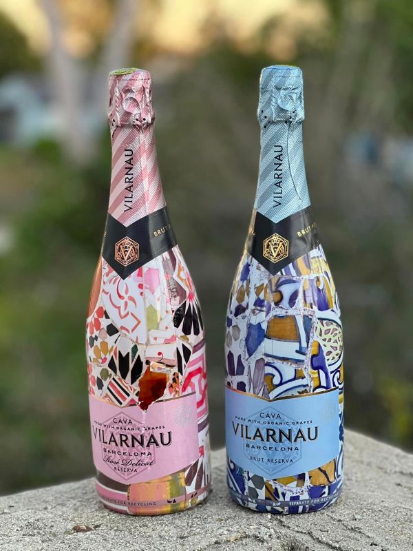 Cava is a sparkling wine made in the traditional méthode champenoise, but using traditional Spanish grapes– and in this case, organic! The very festive Vilarnau bottles reflect their Catalan roots with the avant-garde imagery of Antoni Gaudí.