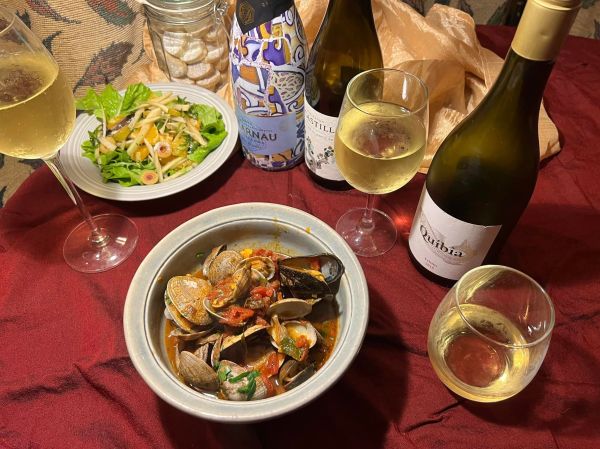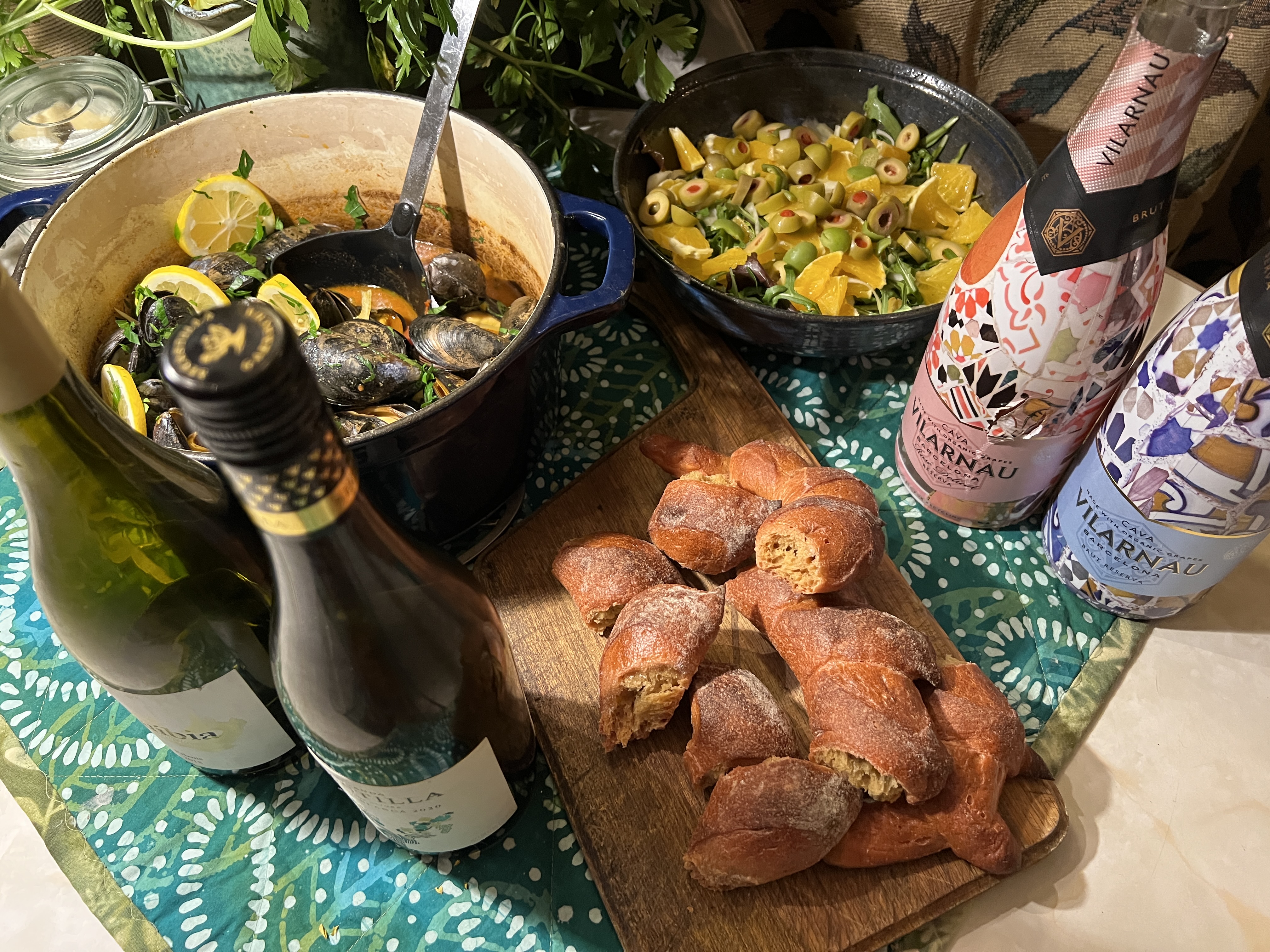While the tech sheets suggests pairing with bay scallops, langoustines, mussels in a butter broth, and seafood paella, we found the rich umami of the broth with the mussels overwhelmed the wine a bit, making the dish sweet even though it lacked sugar in the recipe (see below). Marshall called the Spanish lemon cookies a “lemon meringue pie in a cookie.”