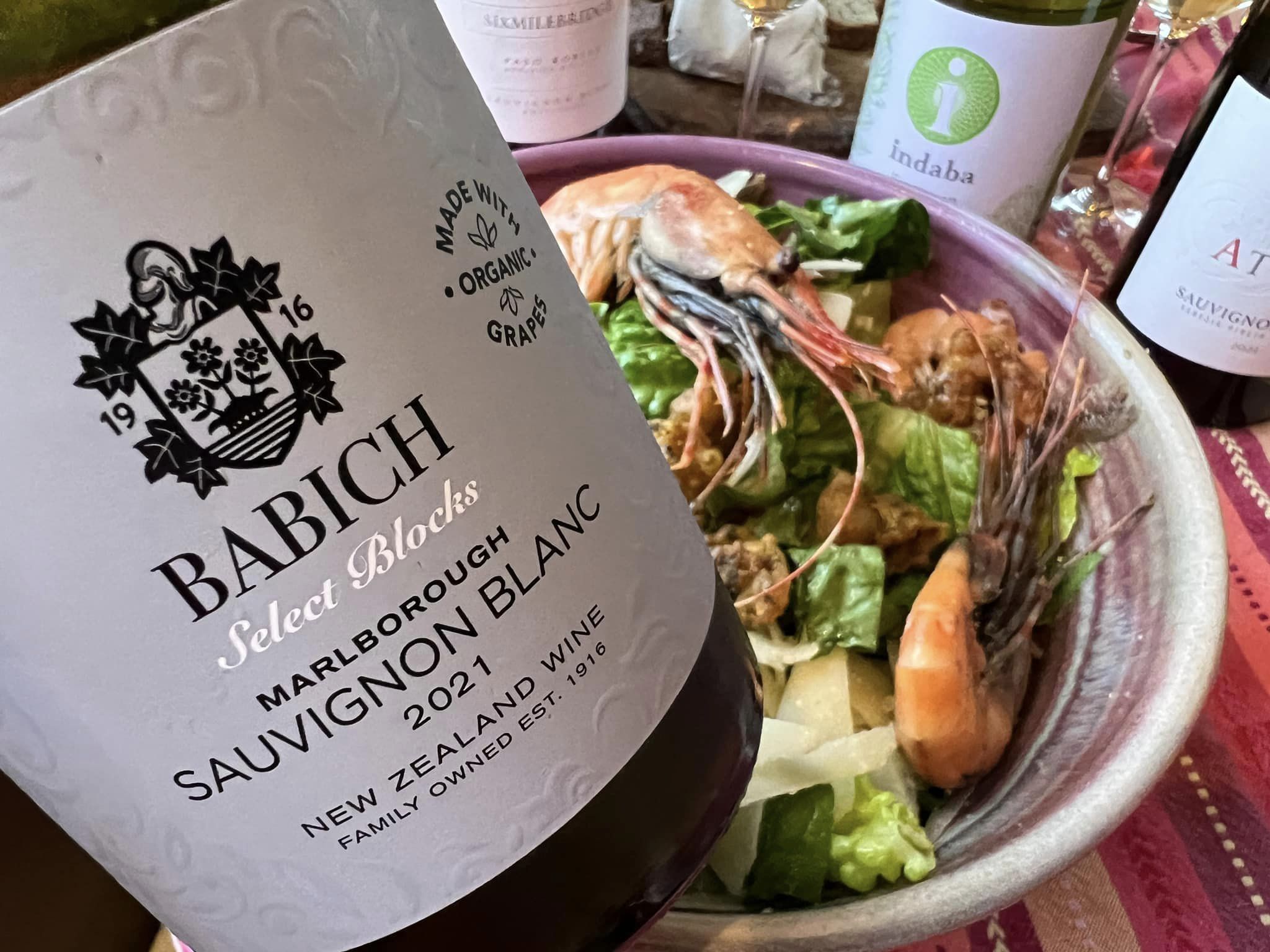 Pairing: Fresh, bright and yum, there is an austerity in the wine which bring out a richness in the oyster. New Zealand Sauv Blanc is a no brainer when we are thinking about pairings, and it is confirmed with this wine. Think no further when you want to throw something quick and easy together for a quick summer gathering. If you need a bit more on the plate the Old Amsterdam Goat gouda works so well with the wine bringing out a richness in both the wine and the cheese. When the two together there is such a cantaloupe finish. The wine loves the salad loving the garlic and the lemon as well as the salt and pepper calamari croutons. The smoked prawns puts the entire meal over the top with this wine.