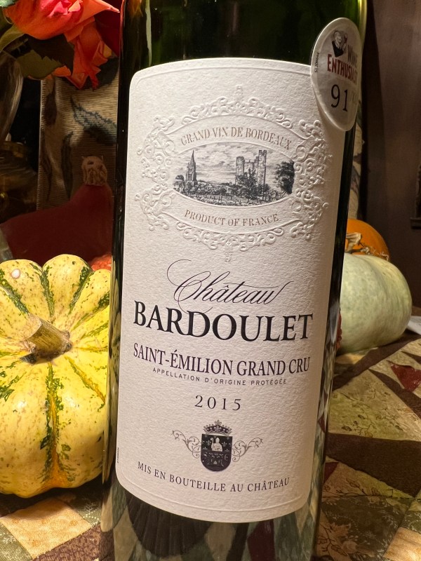 Since October is #MerlotMe Month (read here about a marvelous Mendocino Merlot from Ettore with an Italian, vegetarian feast), we decided to highlight a mostly Merlot from Bordeaux’s St-Émilion for this month’s Winophiles prompt “Cru Bourgeois and other Bordeaux Beauties” — and help maligned Merlot overcome the Sideways effect! (Yes after the movie, while all wine sales went up significantly, Pinot Noir was the biggest winner and Merlot the biggest loser.)