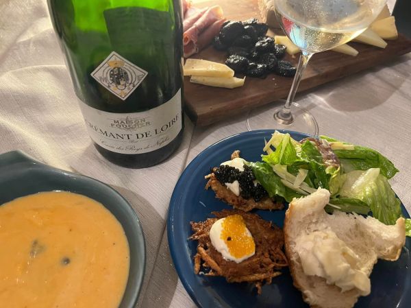Our favorites with this wine were the latkes with the caviar, the LaTur cheese on fresh baked bread, the Cesar salad and the soup.