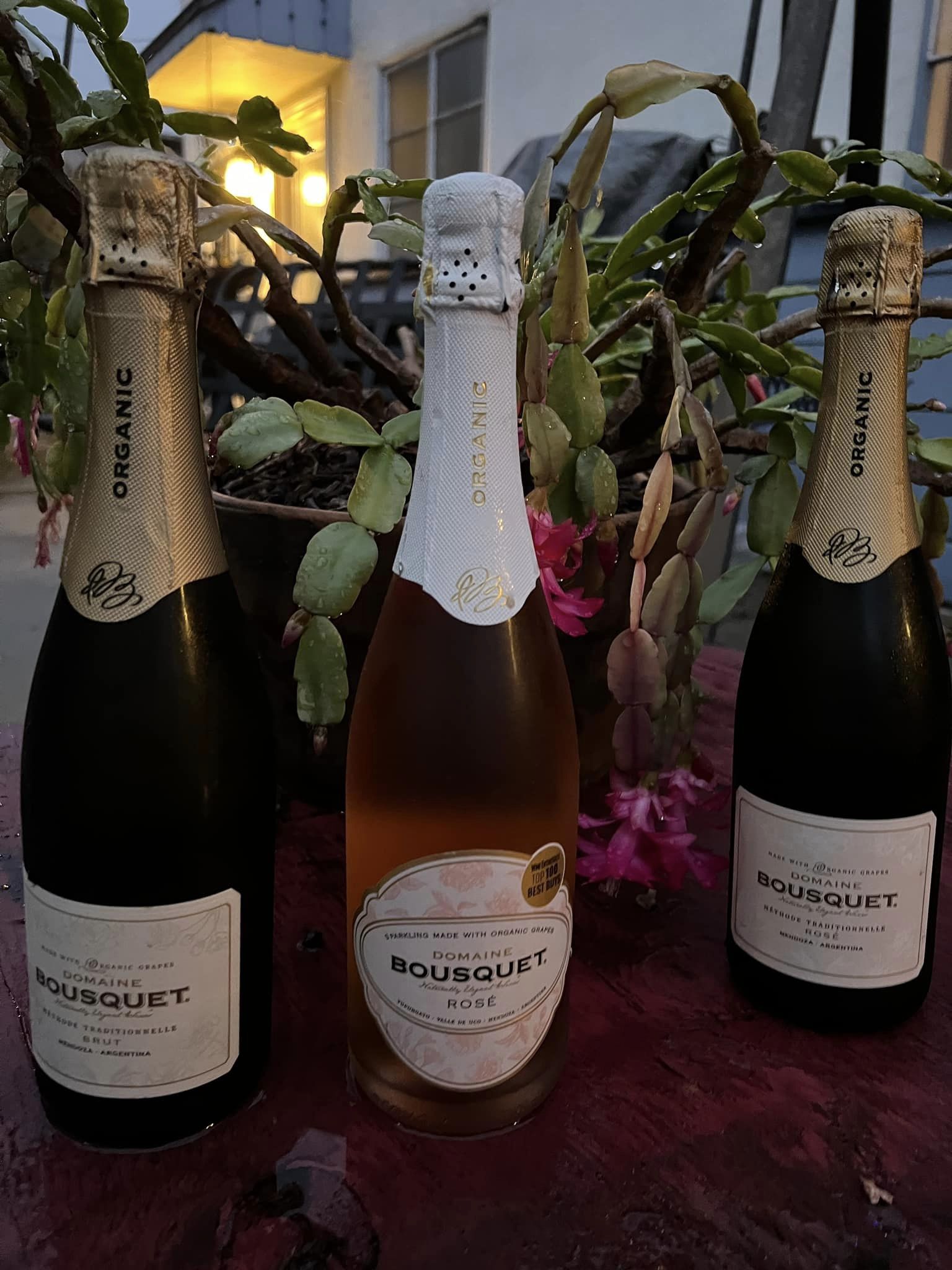All three wines are made from 100% certified organic grapes harvested at the Domaine Bousquet estate in the high-altitude Gualtallary growing zone of Argentina’s Uco Valley. Two are made in traditional French method (like Champagne), while the third is made in the Charmat method (like Prosecco).
