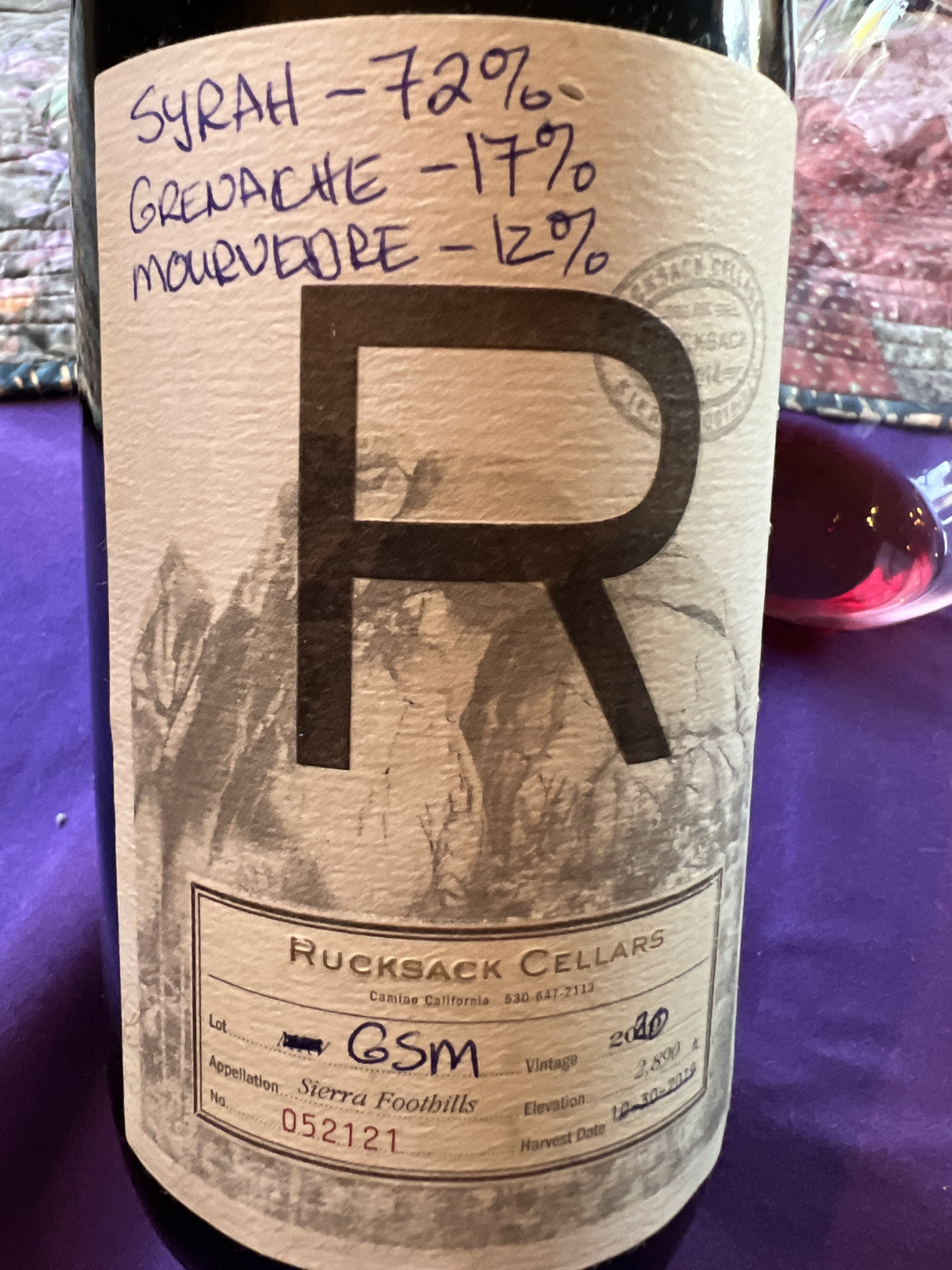 2020 Rucksack Cellars GSM, Sierra Foothills, El Dorado