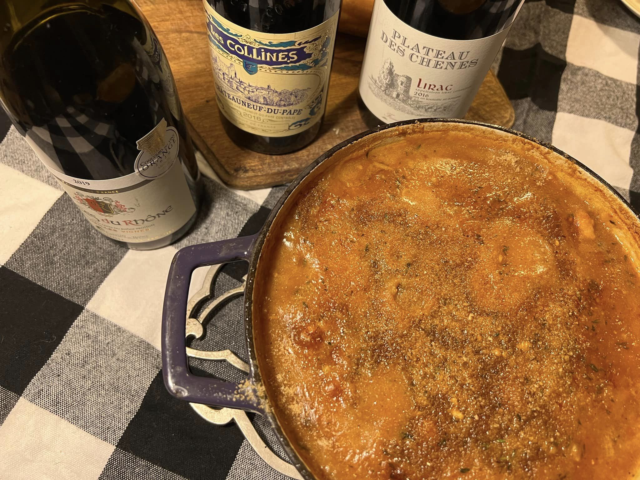 So instead I thought I’d write about the abstract idea of the gift of wine, and since the Winophiles prompt and my birthday line up with Cassoulet Day, and I already had three samples of Côtes du Rhône waiting for tasting, I figured we were covered; link here to that article. Scroll down to see links to posts from other participants.