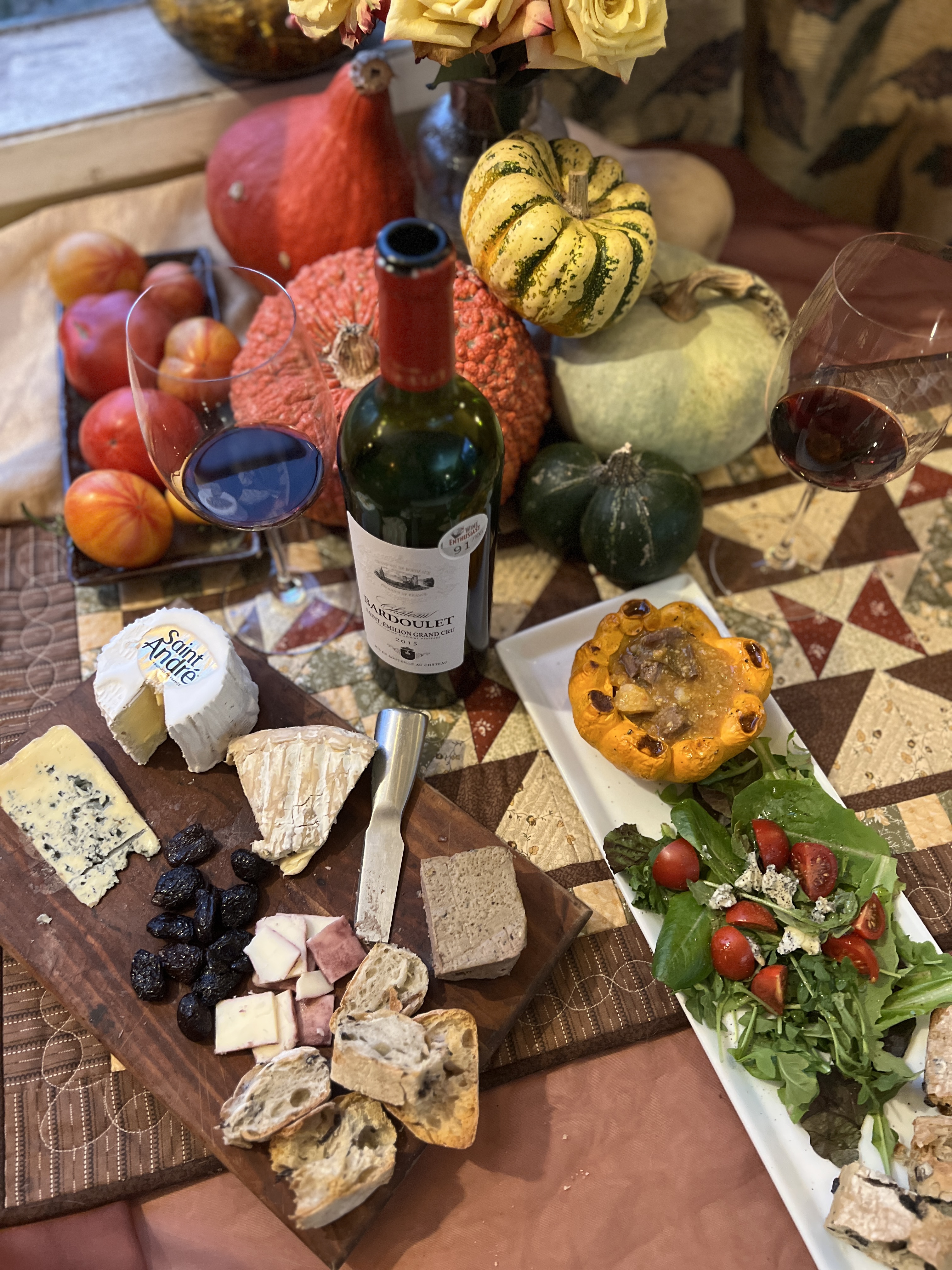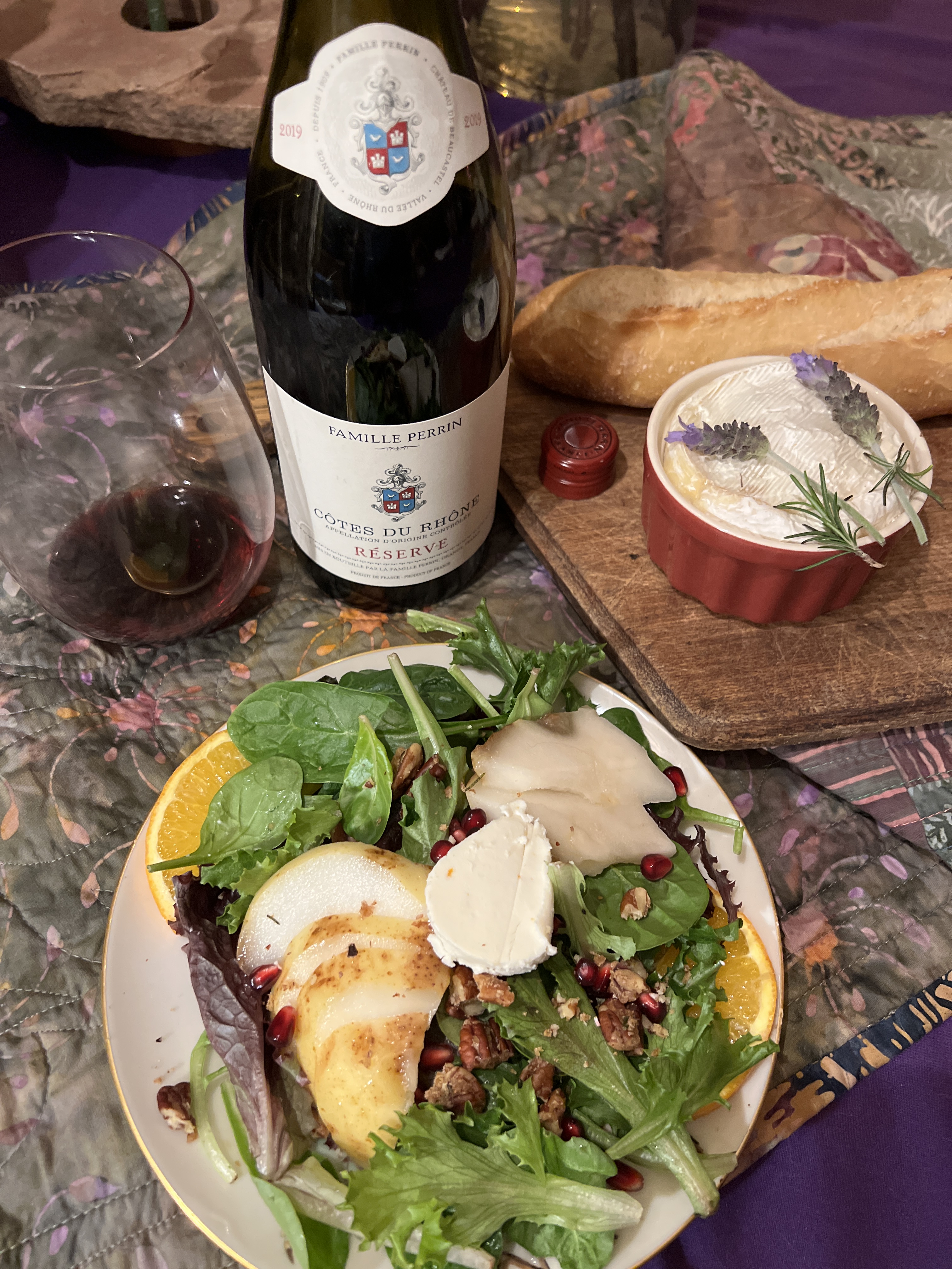 Pairing: Very nice with our fall salad, loves the hint of orange an sweet juicy pear highlighting the tart fruit in the wine, there are many interesting contrasting flavors in this dish, nice with the warm brie on bread, The bites of the cassoulet are perfect with the wine. The salt, the richness, the complexity of flavors are so amazing together with the wine.