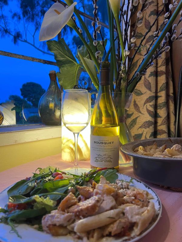Since March is Women’s History Month, we took a quick roam around the cellar to find wines from women from around the world to pair with one of Sue’s and her mom’s favorite go to dinners: shrimp and chicken penne rustica, an easy dish for their weekly Wednesday night get togethers which they love to pair with red wines like Sangiovese and Montepulciano d’Abruzzo. The recipe to me said to try it with these four white wines where women are involved with producing them. We were pleased with the results, and you will be too!