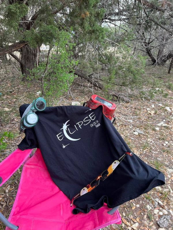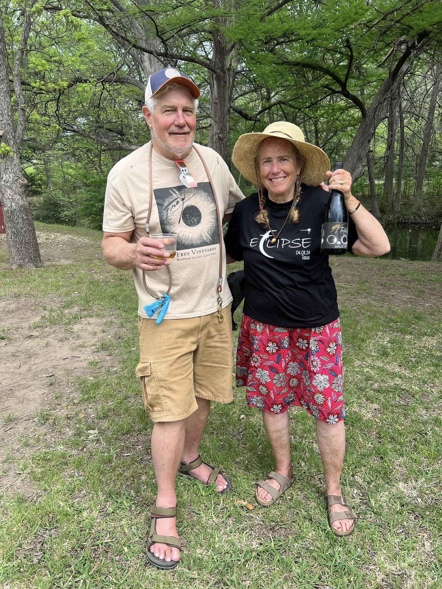 As the Moon passed between the Earth and the Sun casting a shadow on us in the Texas Hill Country, the clouds parted, we sipped sparkling wine from Frey Vineyards, we experienced totality along the Rio Frio near Leakey, and we gazed at the Sun without needing protection for over four minutes.