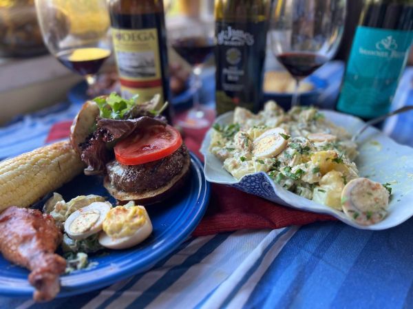 Happy Independence Day! What are some of your traditions? Do they include traditional American foods like grilled burgers or hot dogs? What about wine from the US? While California cab may be considered by many to be king, we decided to do bison and beef burgers with wines from the MidWest made from unusual and indigenous American grapes and hybrids! Bonus, Sue visited these wineries, took photos (below), purchased the wines, and brought them back to share.