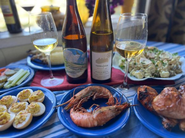 Pairing: Potato chips almost make this wine too sweet however it is still good, it really brings out the sweetness, This wine becomes sweet with food, delicious with the grilled drumsticks, so good with the smoked deviled eggs, Sue felt that this was a knock your socks off pairing, also great with the pickle tray loving the celery carrot and pickle, another great starter wine, the food also brings out the beautiful floral aspects in the wine that resonates,