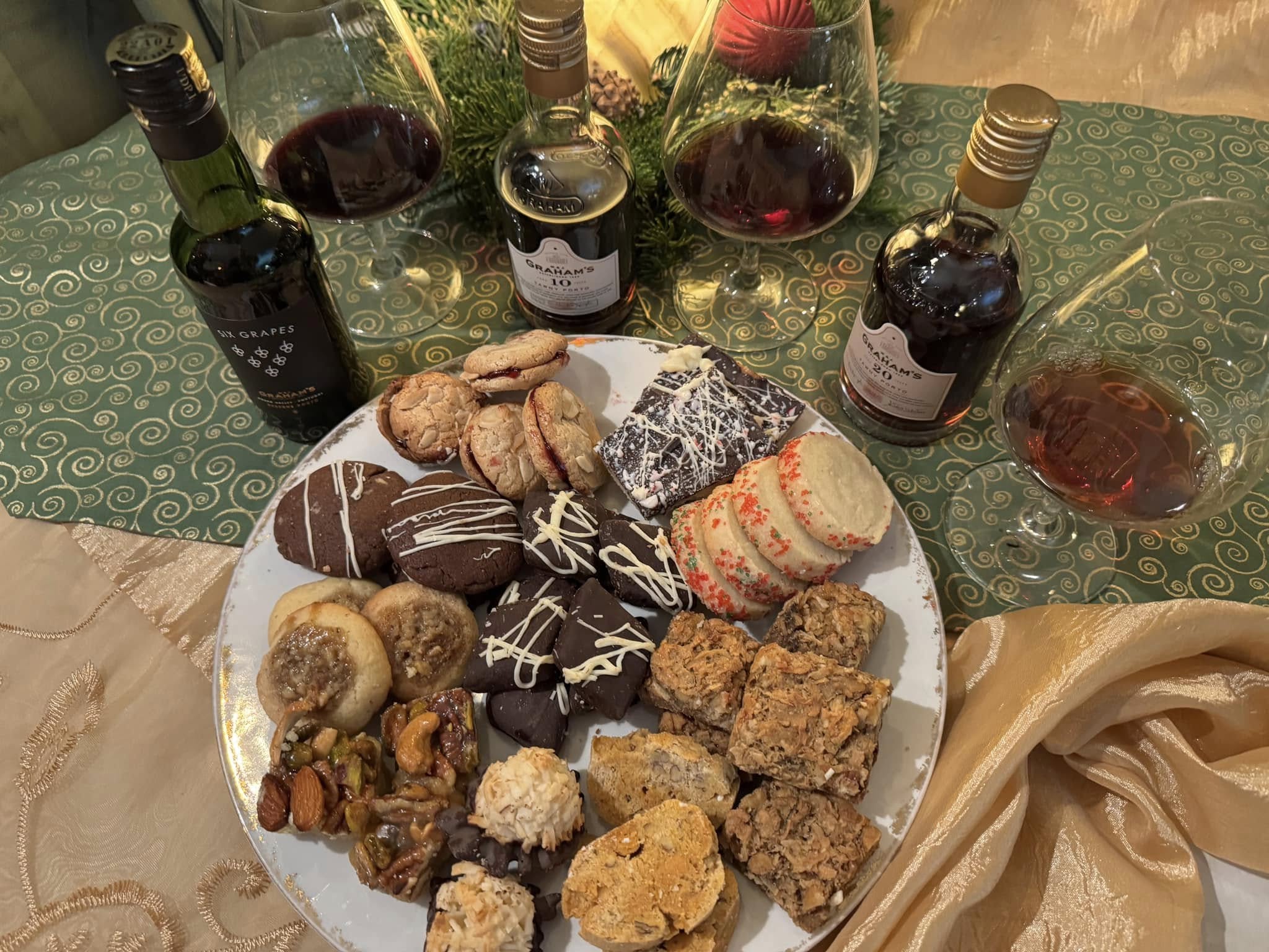 What’s the trick to pairing wine with dessert? The wine has to be sweeter than the dessert. Why is it important to have port in the house this season? Port, the rich fortified wine from Portugal, pairs perfectly with holiday desserts like Christmas cookies and chocolate! So unless you are doing a cheese course for dessert, you’re going to have a hard time finding a wine that goes with dinner and dessert. That Napa Cab that was so good with that steak or that Chardonnay that was so tasty with the cesar salad or the lobster bisque just is not going to taste so good with that sweet dessert– the wine gets bitter or tannic or just yucky while the wine doesn’t do the dessert any favors. That’s where dessert wines like port come in. What’s also great is that because of the sugars in the wine and the process they are made many dessert wines and ports will last for a month or more and still taste great making them a worthy investment — and an investment they can be which also makes for a special holiday host gift.