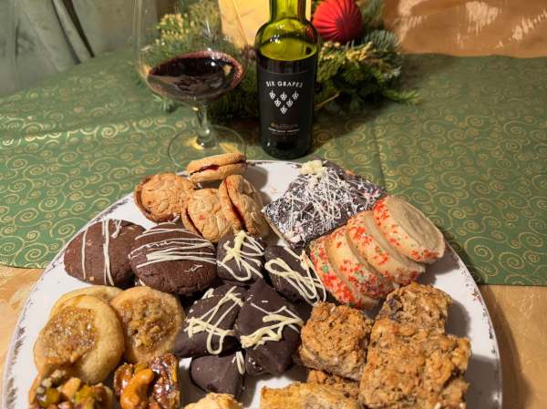 Pairing: I enjoyed the honey nut clusters on shortbread, Shortbread and port is a fantastic combination. it loves the buttery richness in the shortbread, the baklava thumbprints were a bit too sweet for the wine. The peanut butter sandwich cookies worked well with the wine. The Italian Christmas cookies worked perfectly with the wine, it was not to sweet and both the wine and the cookie had a lengthy finish.