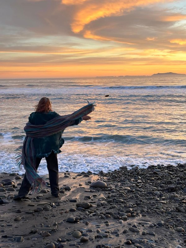 Throwing a stone into the sea for Laurie, my sister; photo by Claudia Miklas