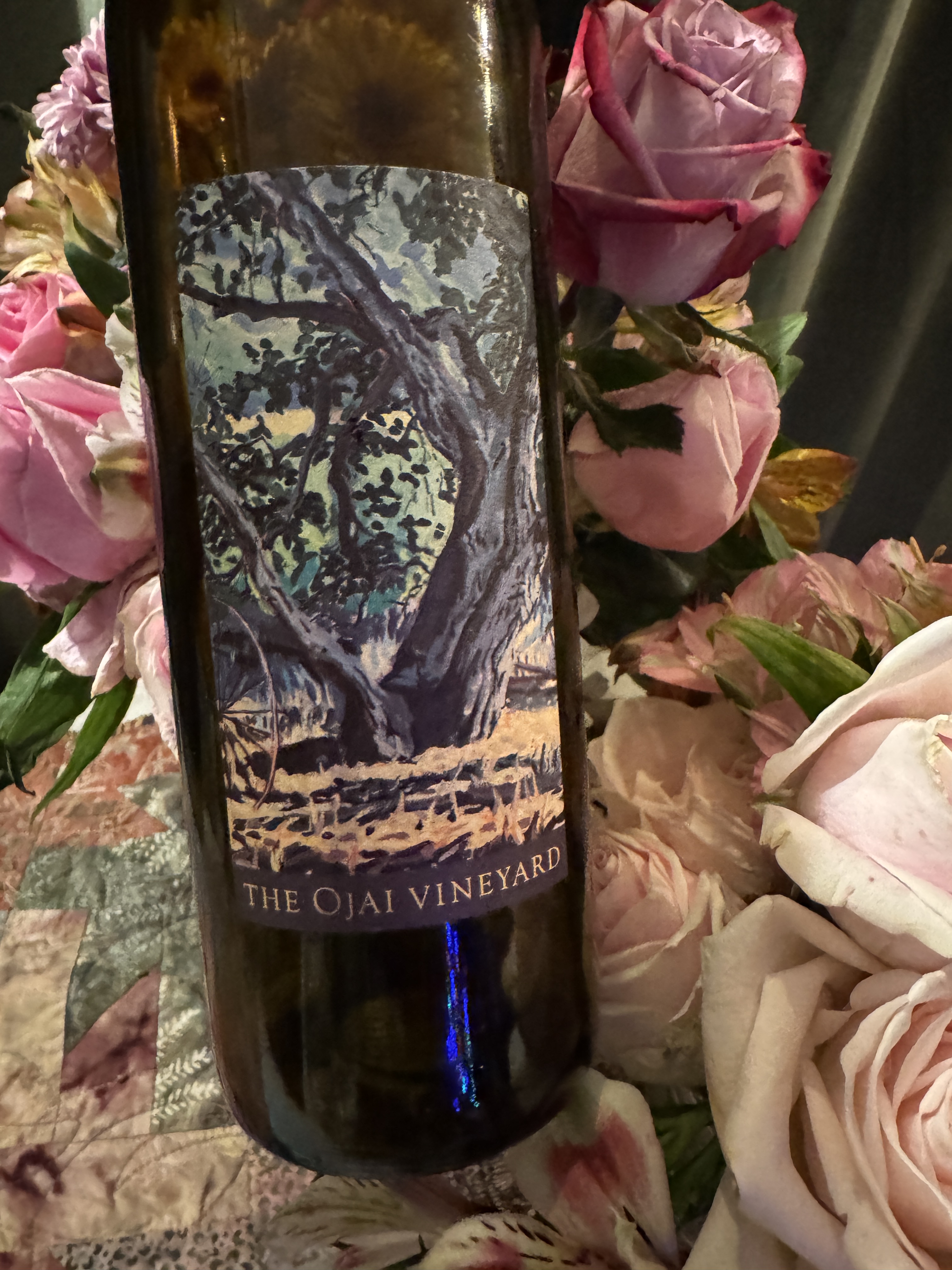 Clearly I needed a wine from grapes grown organically here in Ventura County, and one with a beautiful label. I have a few wines here from Clos des Amis so I started there: do I have a Grenache? maybe their juicy Syrah or Sangiovese? But then I spied The Ojai Vineyard 2019 Paseante Noir with its lovely label of an Ojai oak tree from their property.