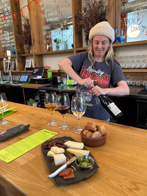 Sue Hill and I first visited the South Mountain Winery to taste Clos des Amis wines and interview winemaker Bruce Freeman in Fall 2017. In January 2019, I started going out there regularly to learn about pruning, planting, picking, blending, bottling, and more! Each month I would write about what I did and what I learned; find a list of articles here. In December 2024, I helped organize a visit to Clos des Amis with two other regional wine writers, and I snapped this photo of Gretel pouring barrel samples at the tasting table for us. Sheila Donohue distributes their wines nationally, and in Ventura County, Gretel pours their wines at the Ventura Farmers Market on Saturday mornings and in Thousand Oaks on Thursday afternoons. Website: Clos des Amis