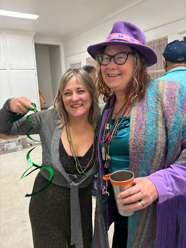 Sheila Donohue and Wine Predator at a Mardi Gras party Sheila hosted where she plans to have a tasting room for the wines she imports