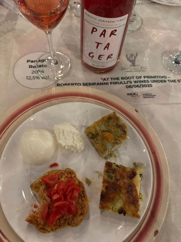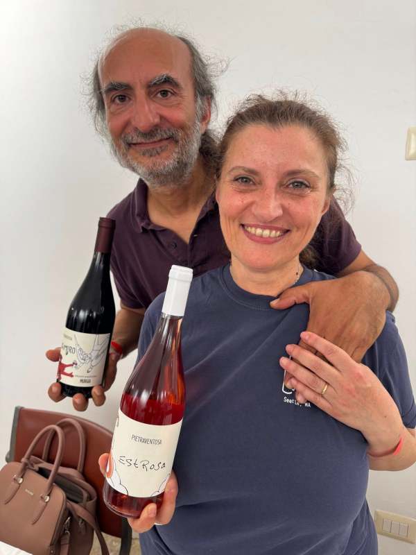 - And I can’t NOT mention the 2024 Nero di Troia still rosato, full of sapidity and cherries from organic Domus Hortae, as well as the 2024 Susumaniello “Zuzu” rosato which comes from a grape that’s very dark inside and outside, has low acidity, soft minerality, cherry and strawberry fruit with white peach on the finish. I visited Domus Hortae the day before Radici del Sud and while they usually participate, they didn’t this year so I don’t think I should include them in this list.