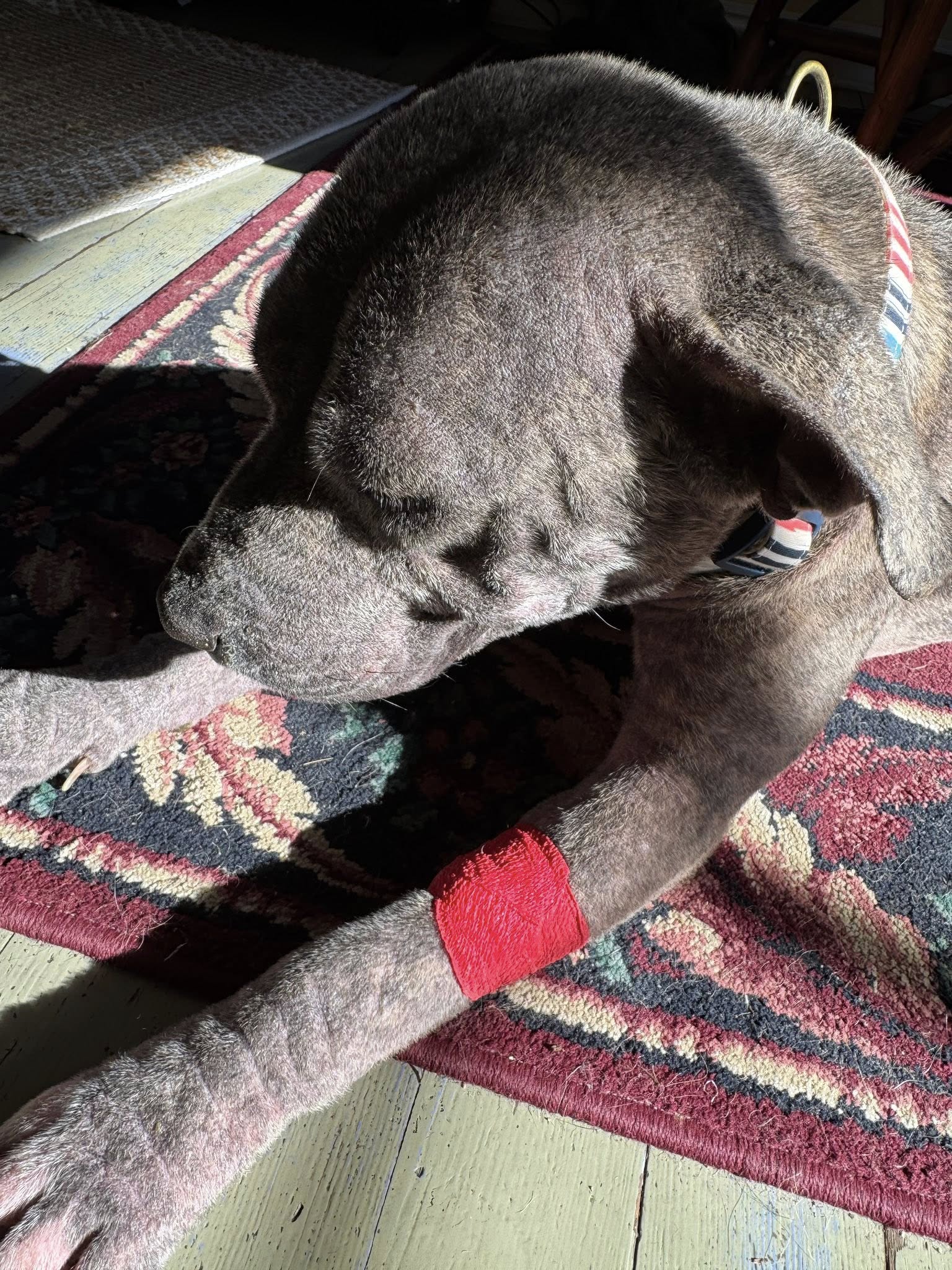 On our sunset hike Friday to the Ventura Botanical Gardens, she was great! But by Sunday morning it was clear she was coming down with something serious, and I spent the day at the vet’s hoping to bring her home with me. Sadly she had to stay in the hospital, but after a lot of expensive care, she came home to us. It’s slow, but steady, and she has a long journey ahead for a full recovery, but for a few days there, it was very stressful and scary for those of us who have fallen in love with Nova. I watched her closely, wiped her nose, gave her medicines by hand wrapped in wet food which I would warm with hot water. Plus I would stay up late checking on her and bring her to go outside for potty breaks, I’d wake in the night to check on her, and I’d get up early in the morning to make sure she got her meds on schedule. Fortunately, her appetite is back, and she is sleeping well.