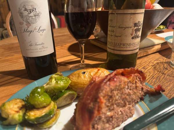 - On a subsequent night, enjoyed both red wines with meatloaf made of Kobe, Wagyu, and pork Italian Sausage.