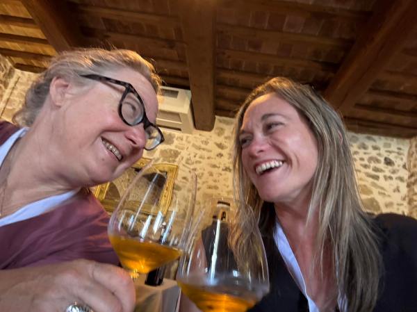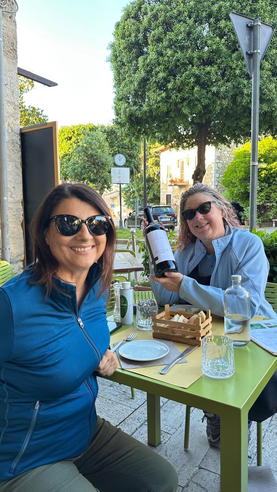 Gwendolyn Alley and Antonella Manuli at Saturnalia Wine Bar and Kitchen in Saturnia, Tuscany May 2025