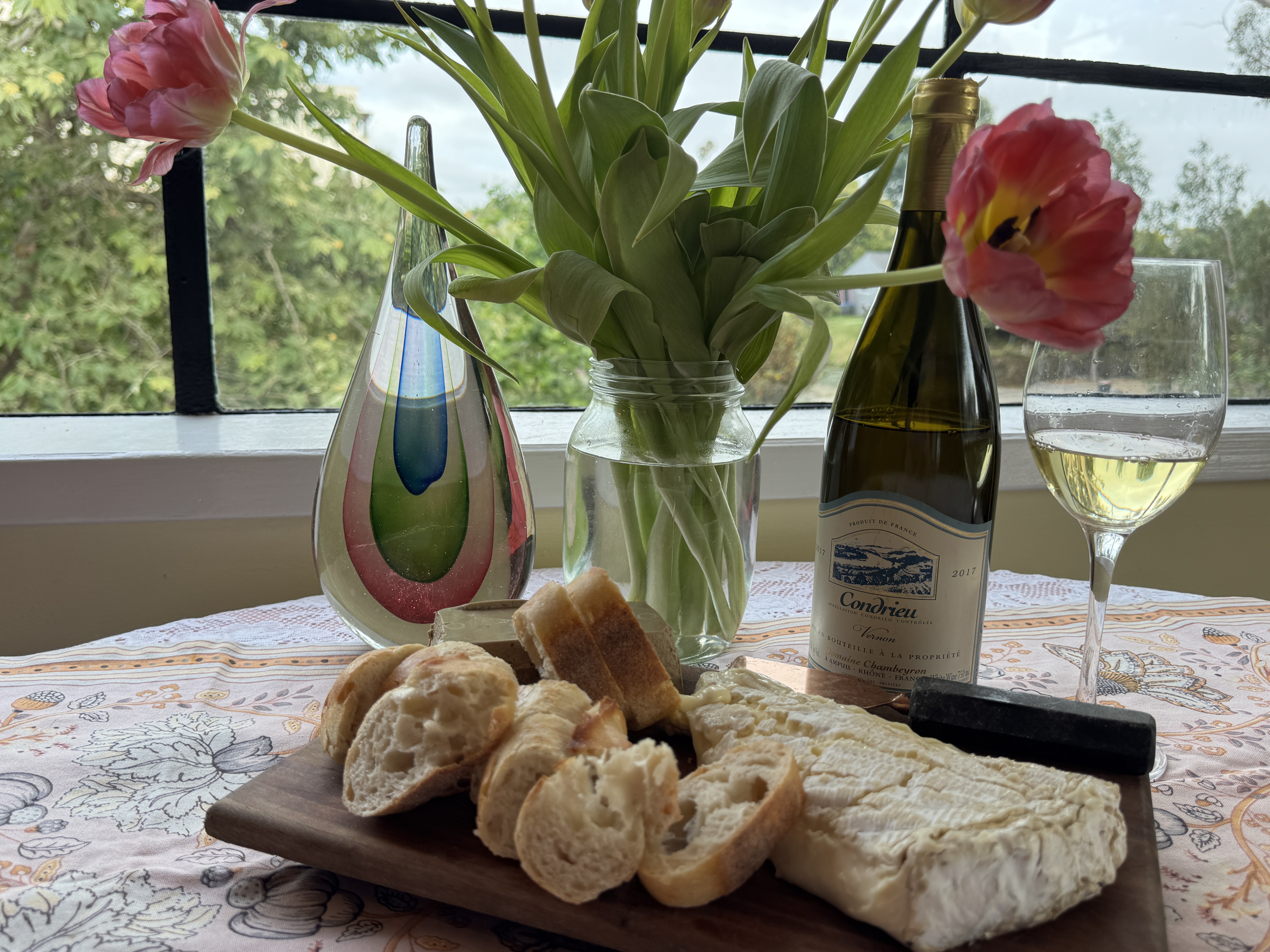 Pairing: No surprise here but this wine is fabulous with the brie and pate, the wine breaks through the rich creaminess with the acidity, yet creaminess meets creaminess with both the chest and the wine, the pate and the wine both have lovely richness that go so well together, the wine is very sweet and flavorful with the meal, both the scallops and the wine are so rich and flavorsome together, some say asparagus is a difficult pairing with wine, but not in this case, the crunchy fennel in the salad is accents that particular flavor profile in the wine.